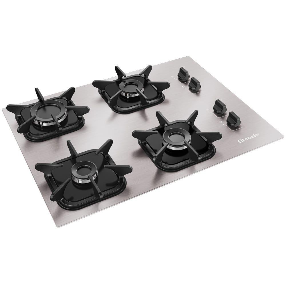 Cooktop a Gás Mueller 4 Bocas mesa em Alumínio com Queimador Ultra Chama e Grades em Ferro Fundido MCG4BK Bivolt