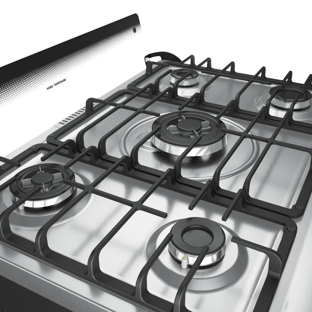 Fogão Mueller 5 bocas Decorato Gourmet Inox com Timer e Tripla Chama