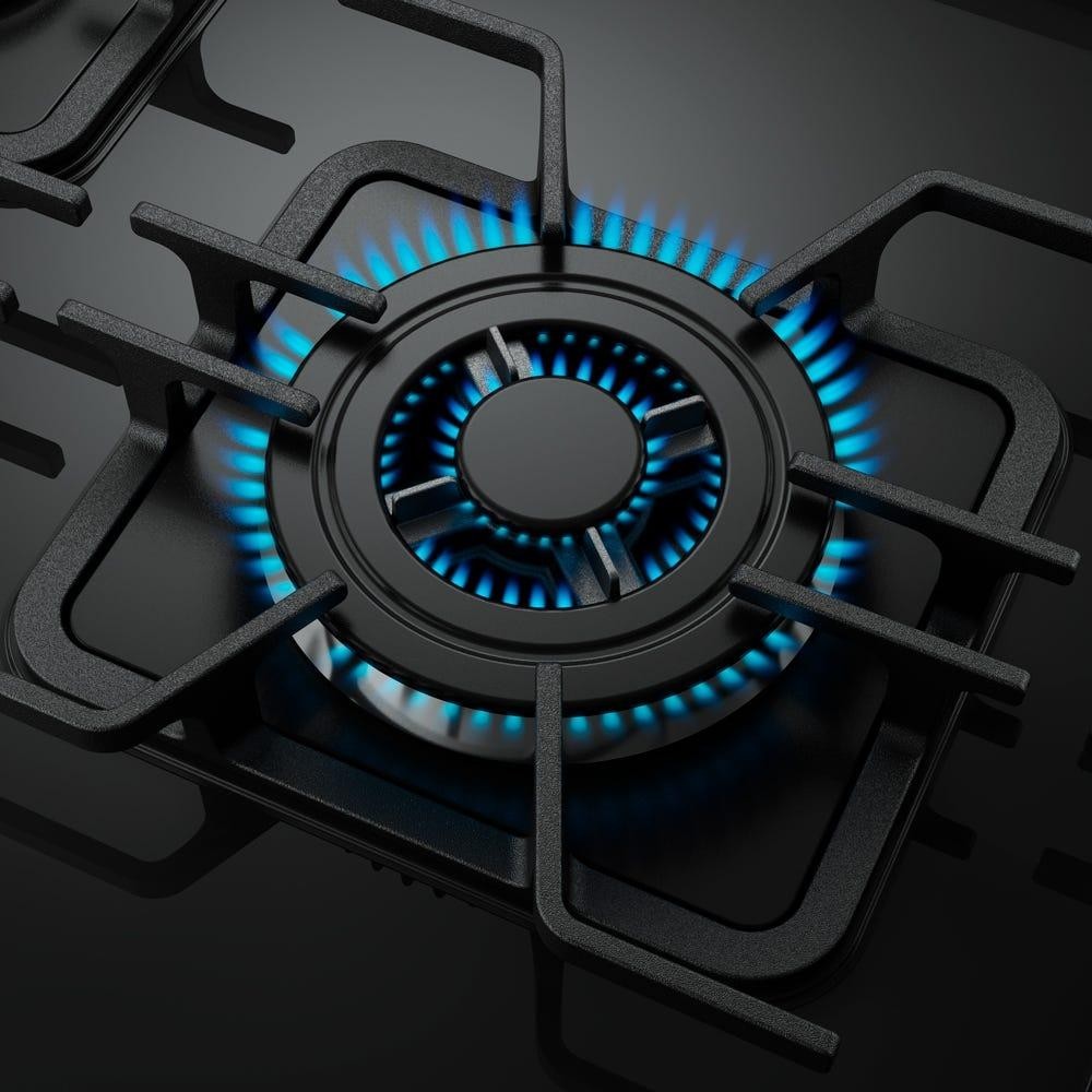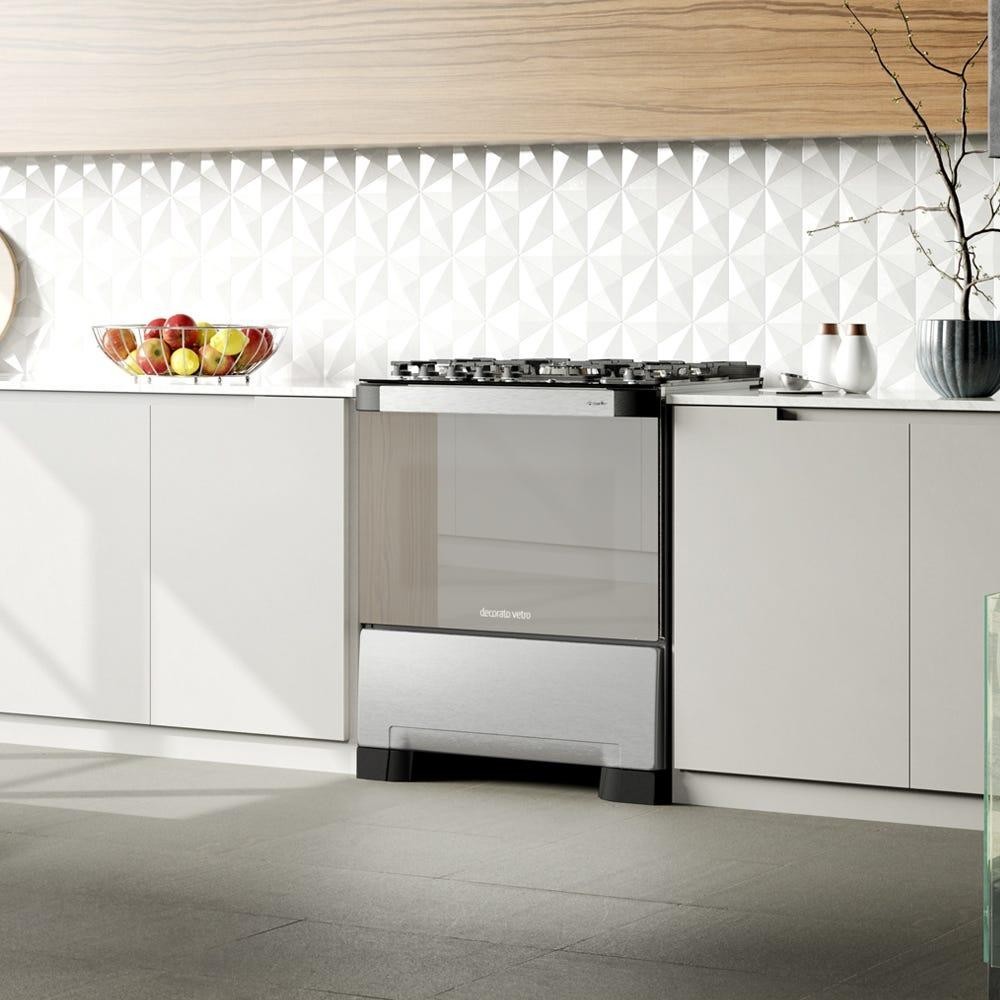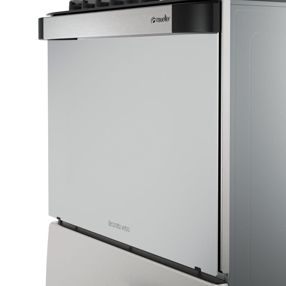 Fogão Mueller 5 bocas Decorato Vetro Inox com mesa de vidro