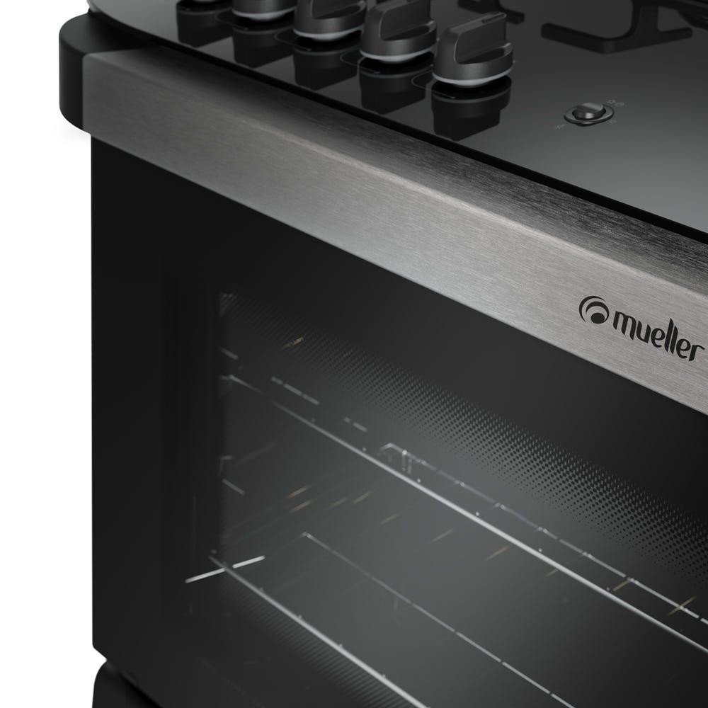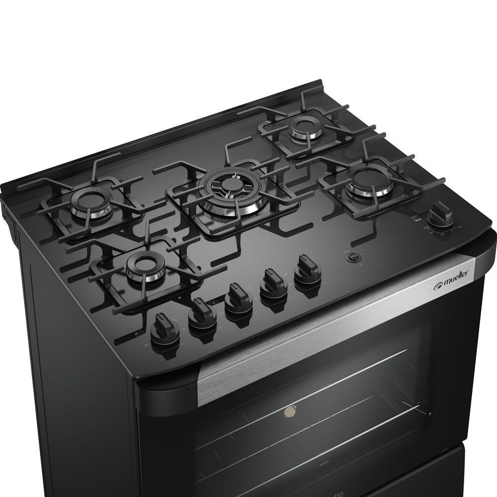 Fogão Mueller 5 bocas Decorato Vetro Preto Fosco com mesa de vidro