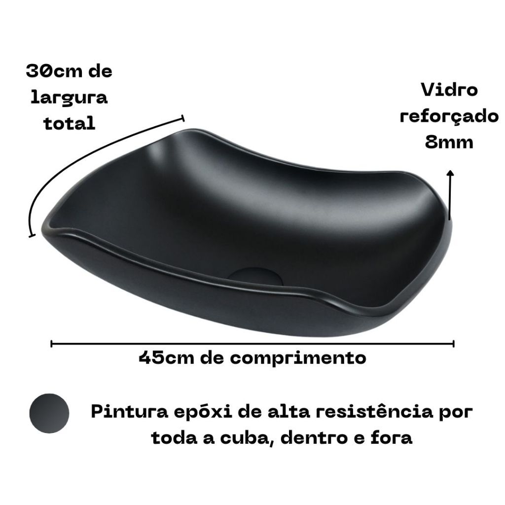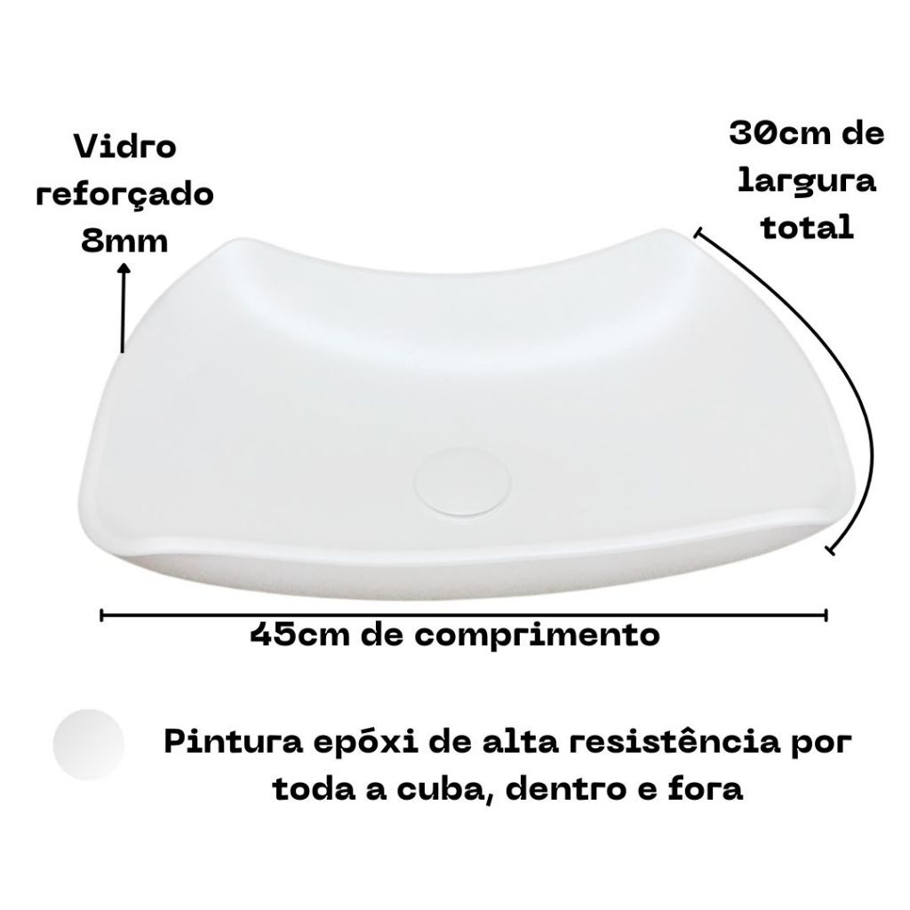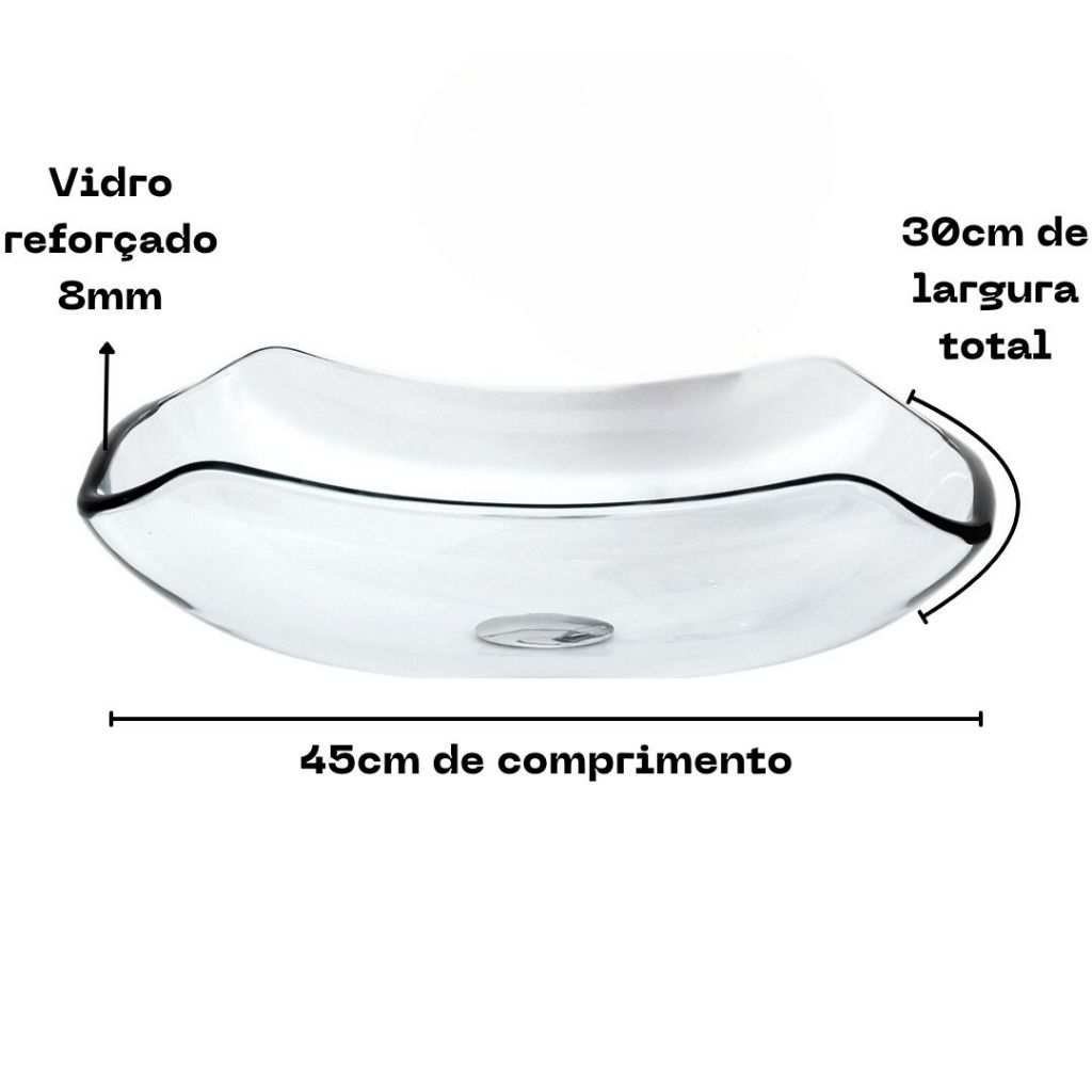 CUBA PIA DE VIDRO ABAULADA PARA BANHEIRO E LAVABO 45X30- MODELO DE APOIO 10MM