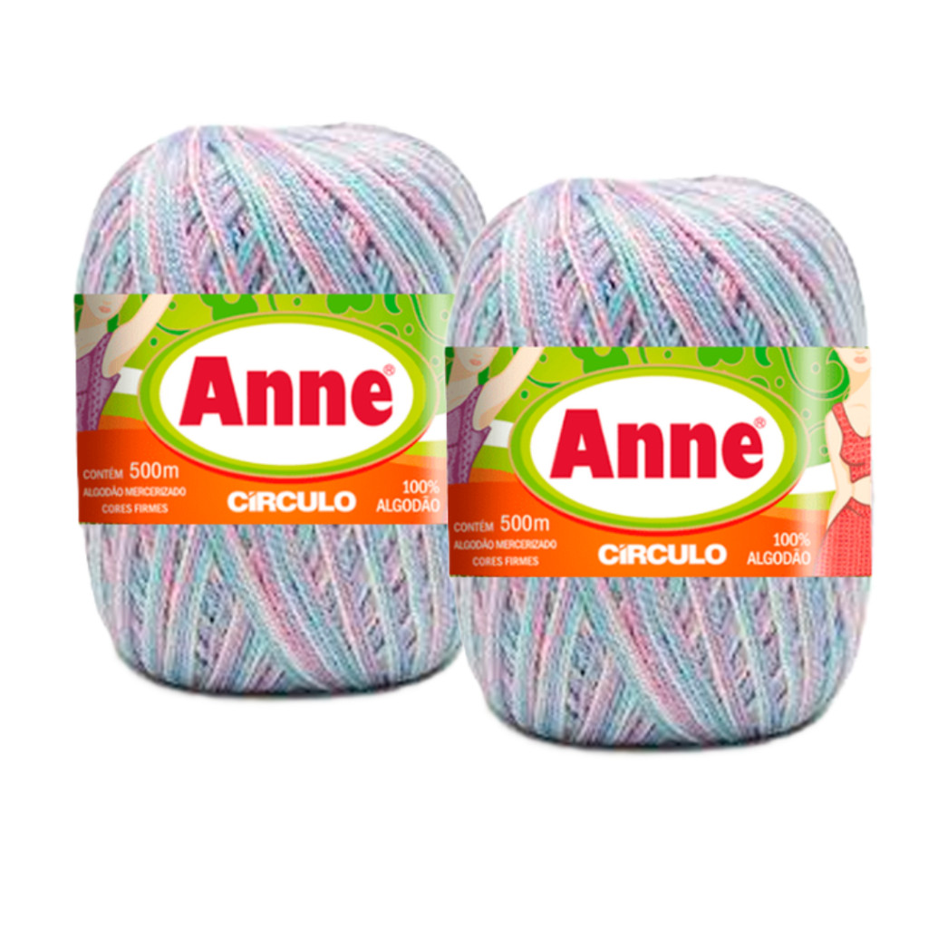 Kit 2 Linha Fio Anne 100% Algodão Mercerizado Circulo - 500m Para Croche e Trico