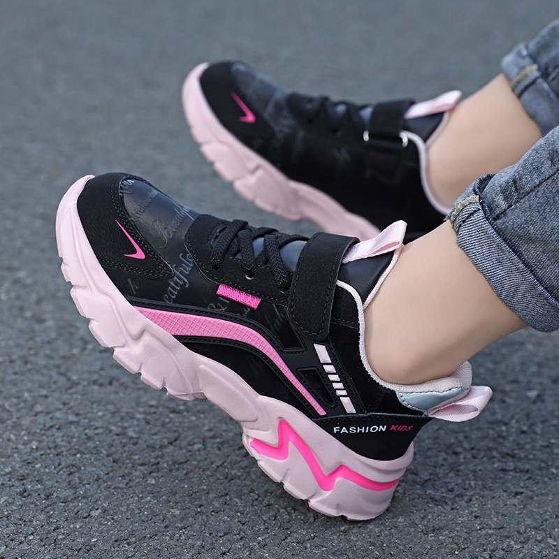 Moda Tênis Infantil Para Meninas De Corrida Esportiva Alunos Da Escola De Casual Preto Rosa Tamanho27-39