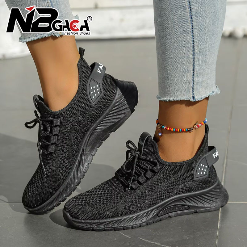 Moda Malha Tênis Feminino Todas As Estações Respirável Casual Baixo Topo Falt Sapatos