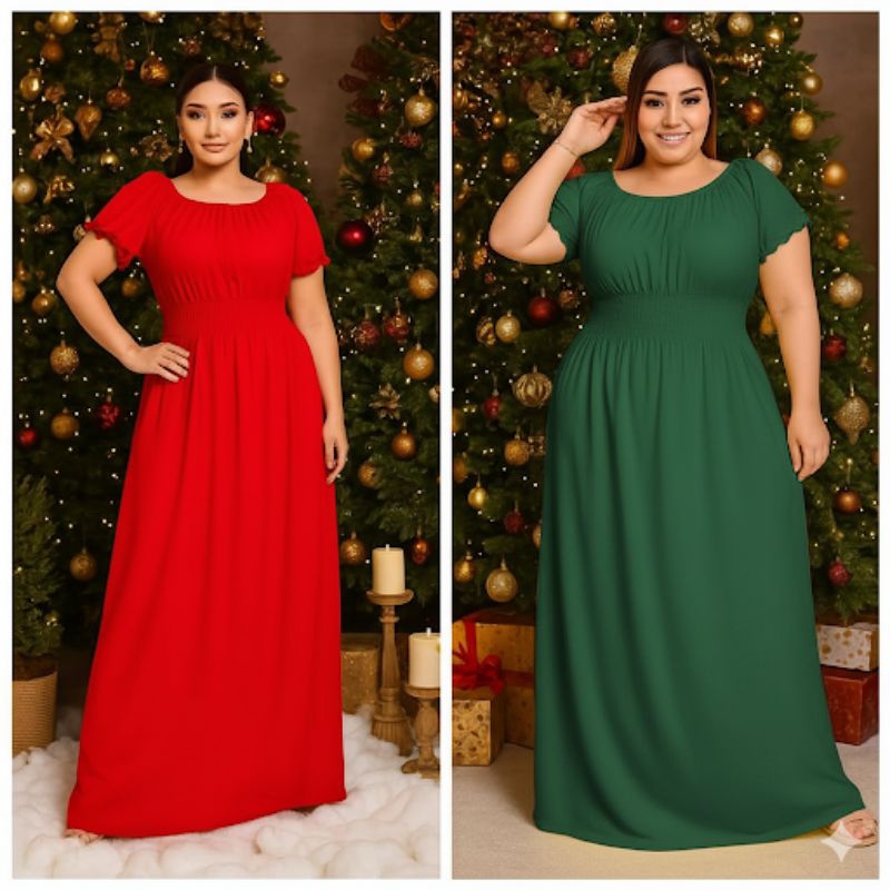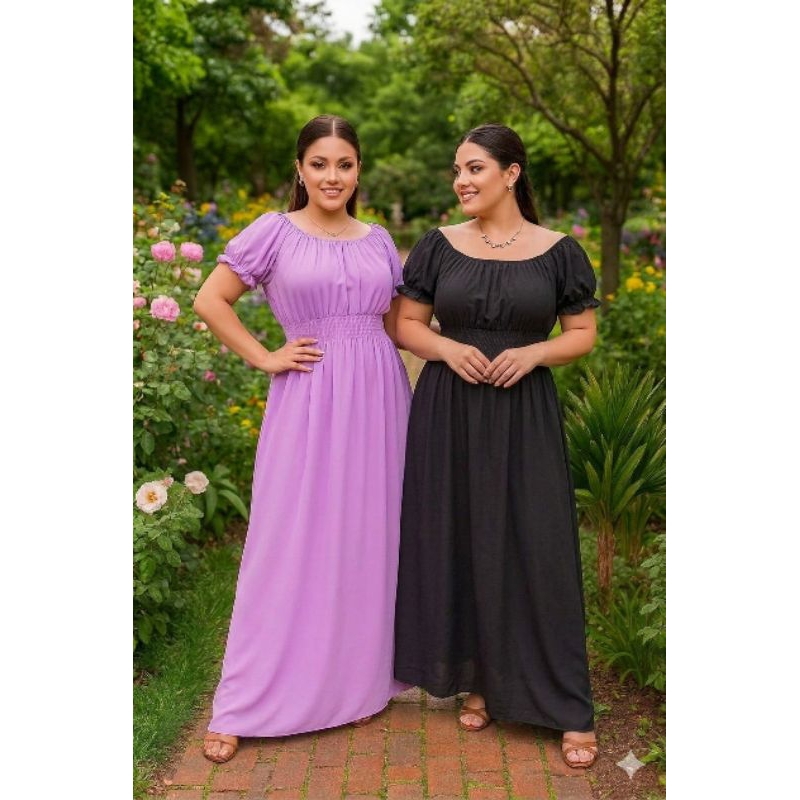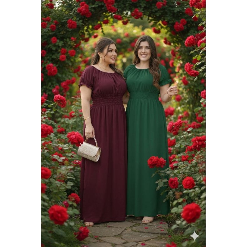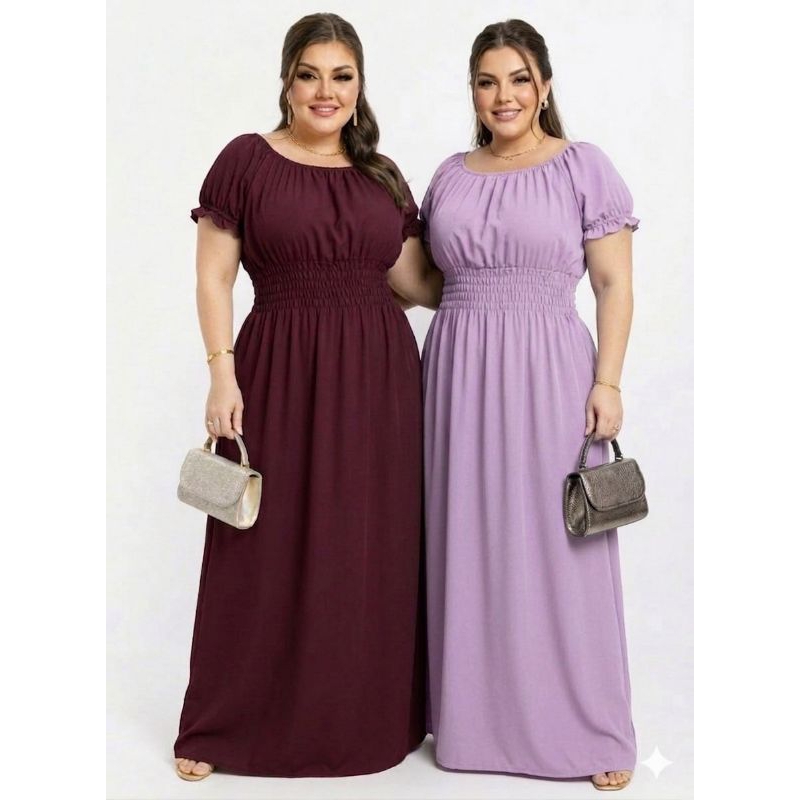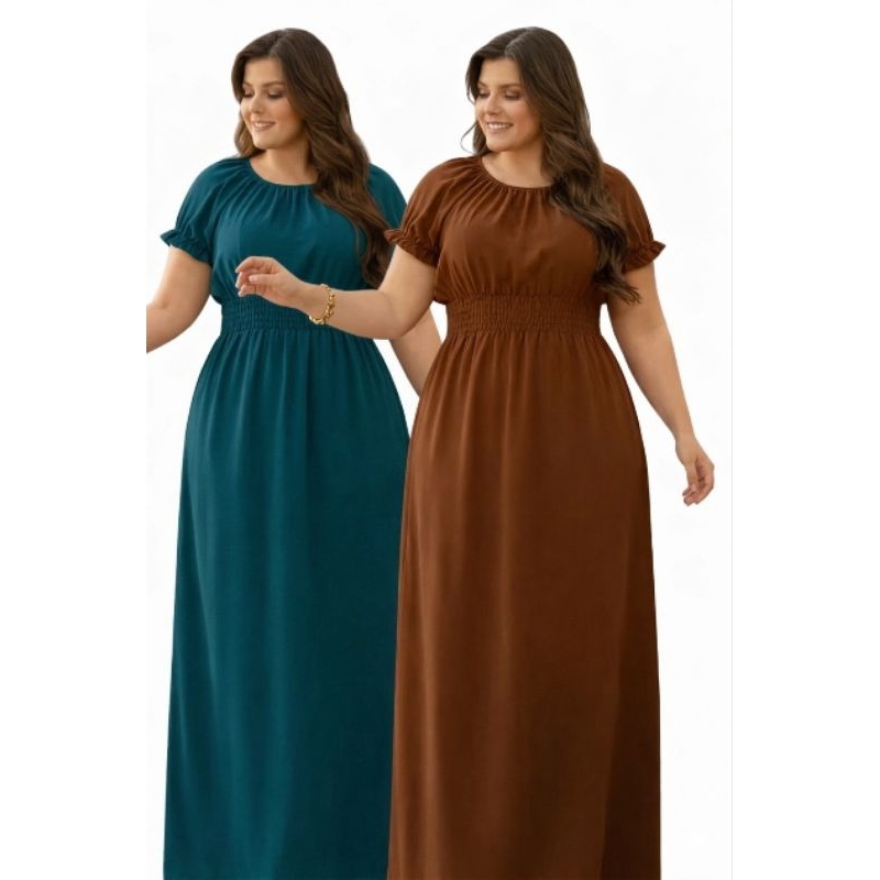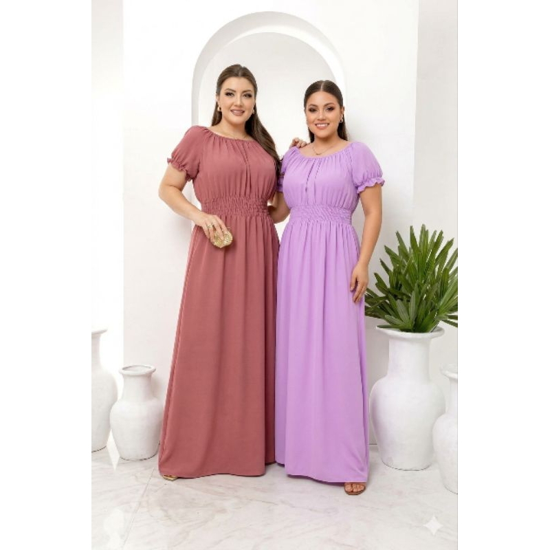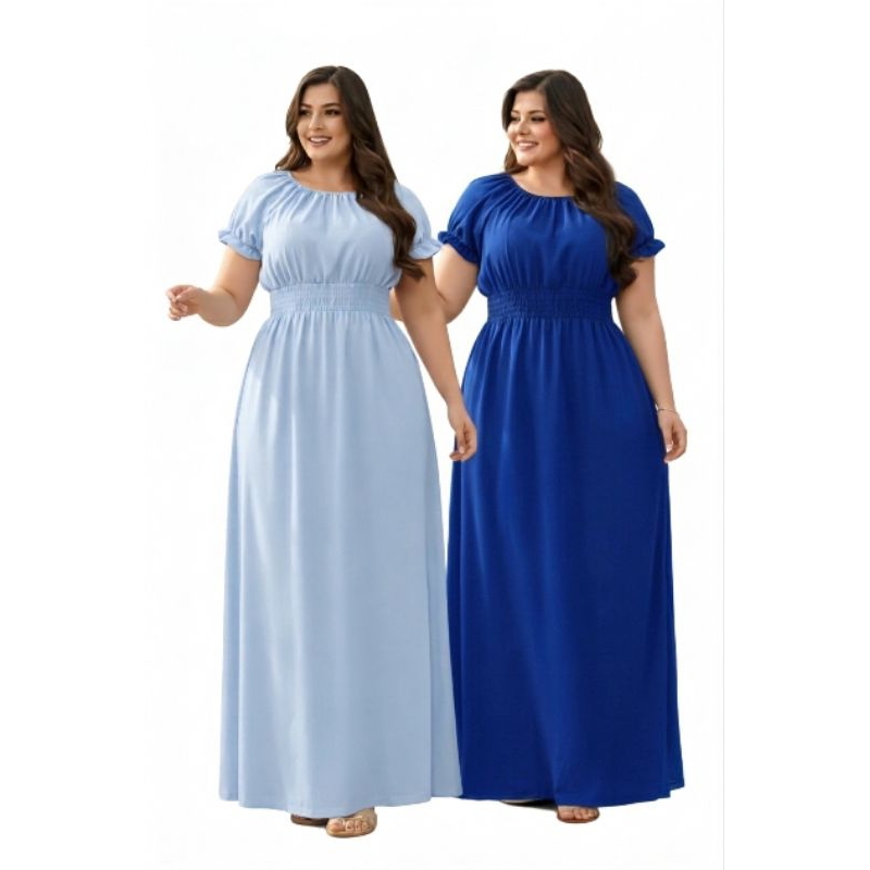 Kit 2 Vestidos Lisos Femininos Longos Manga Curta Cumprido Luxo Evangélico.