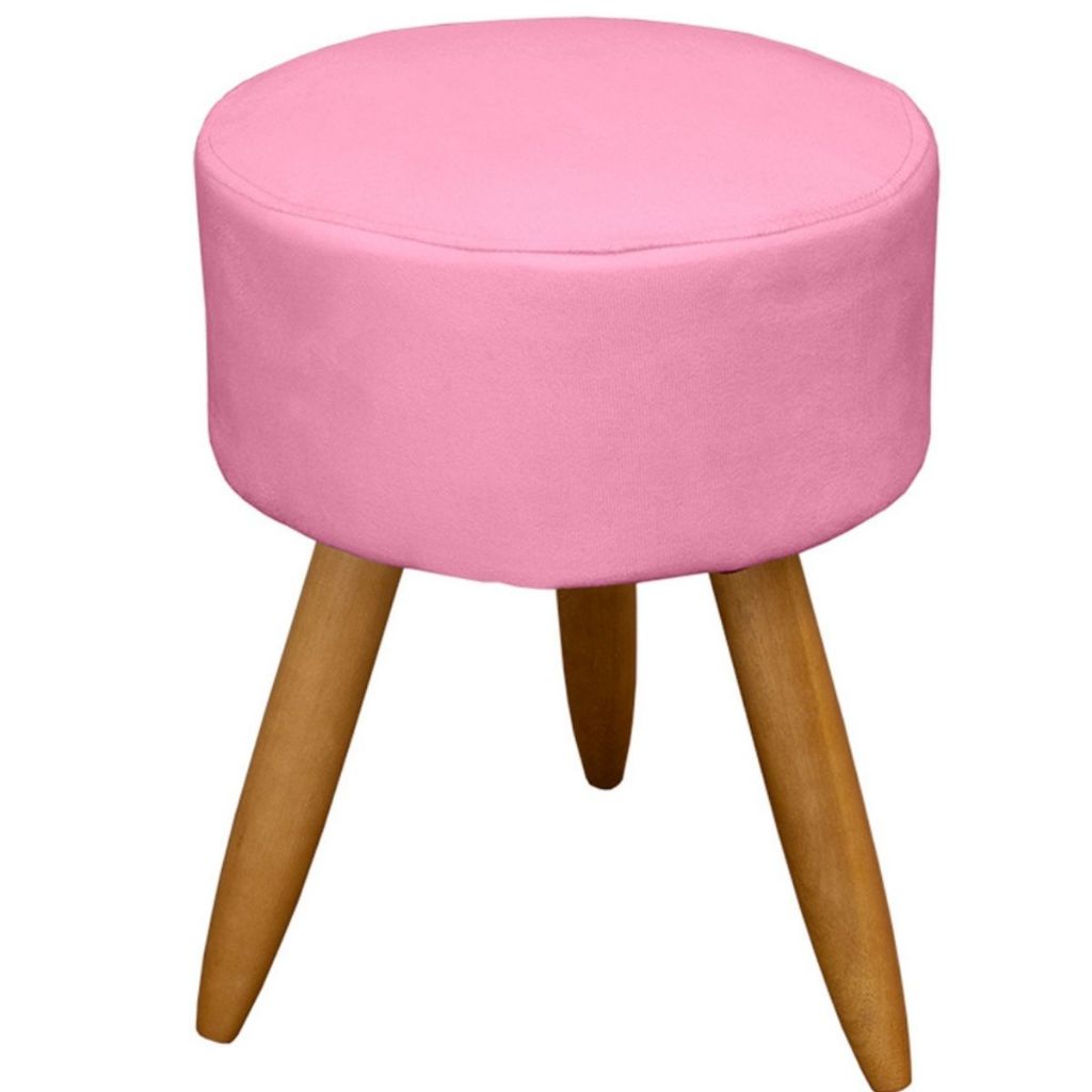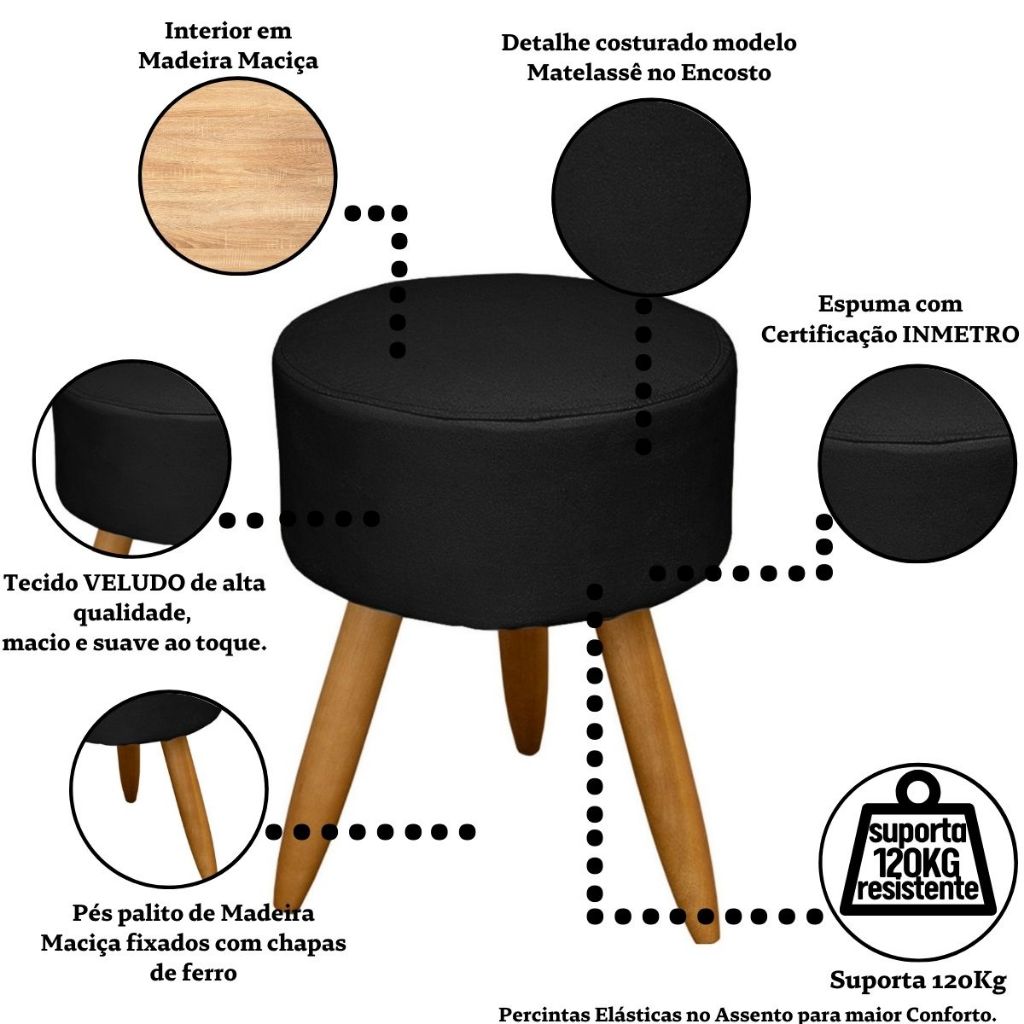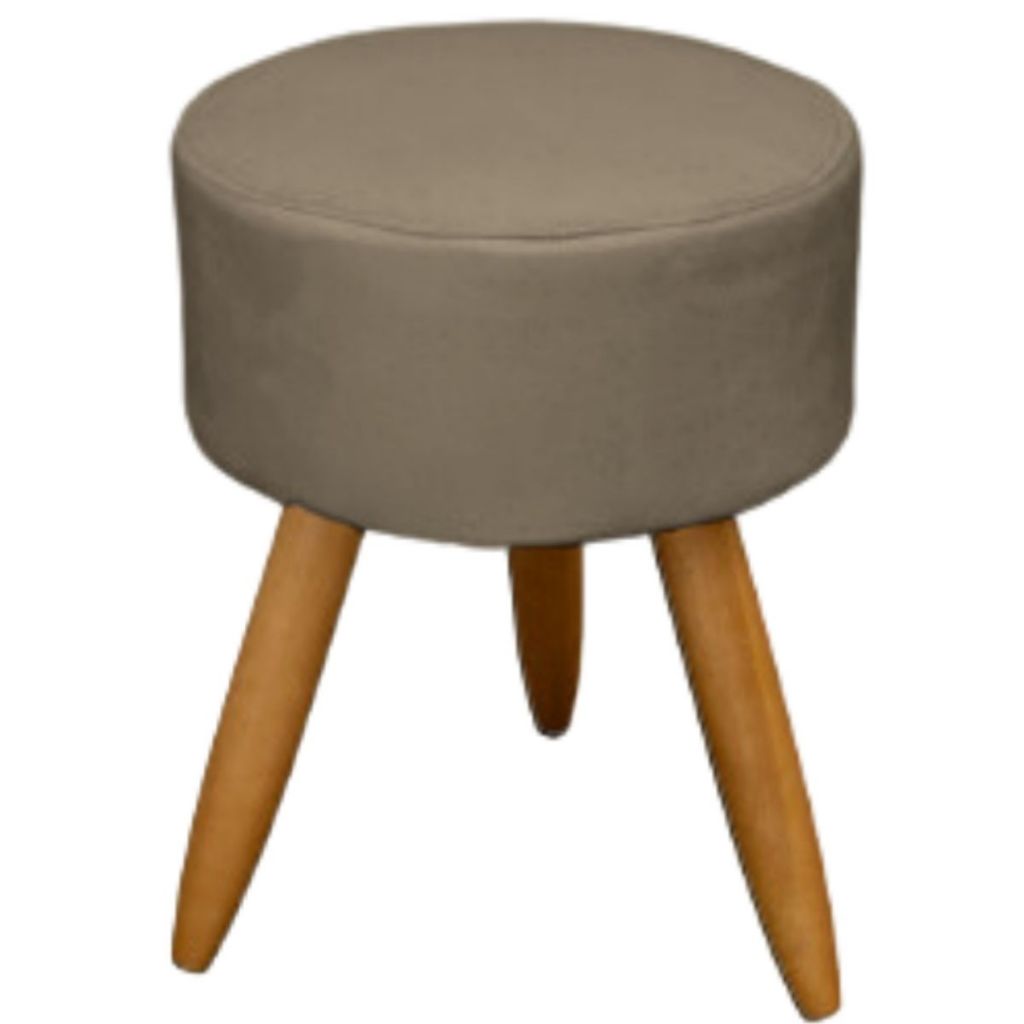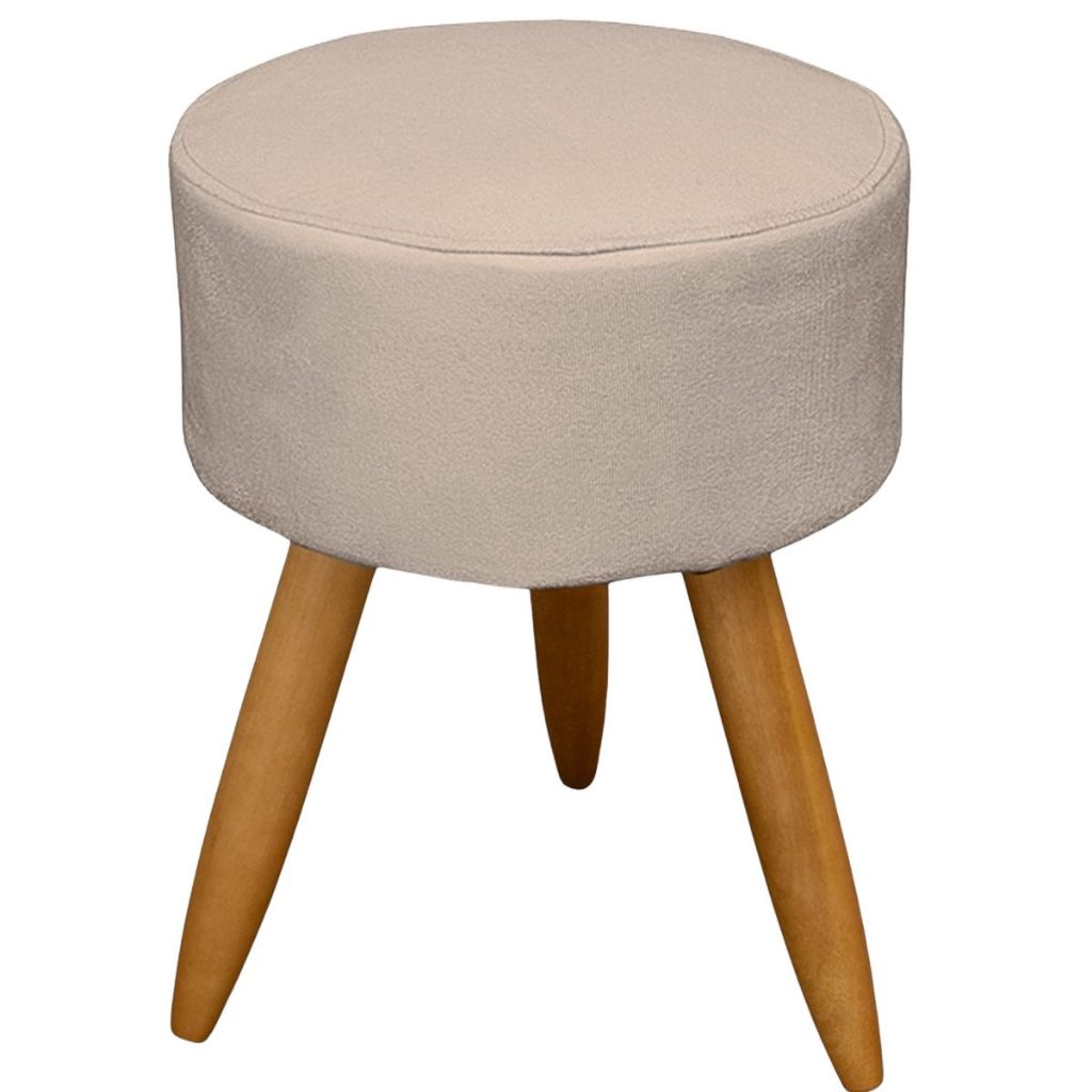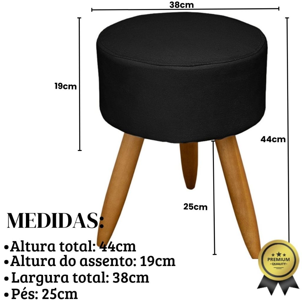 Puff Liso Redondo Moderno Madeira Pés Palito Decorativo