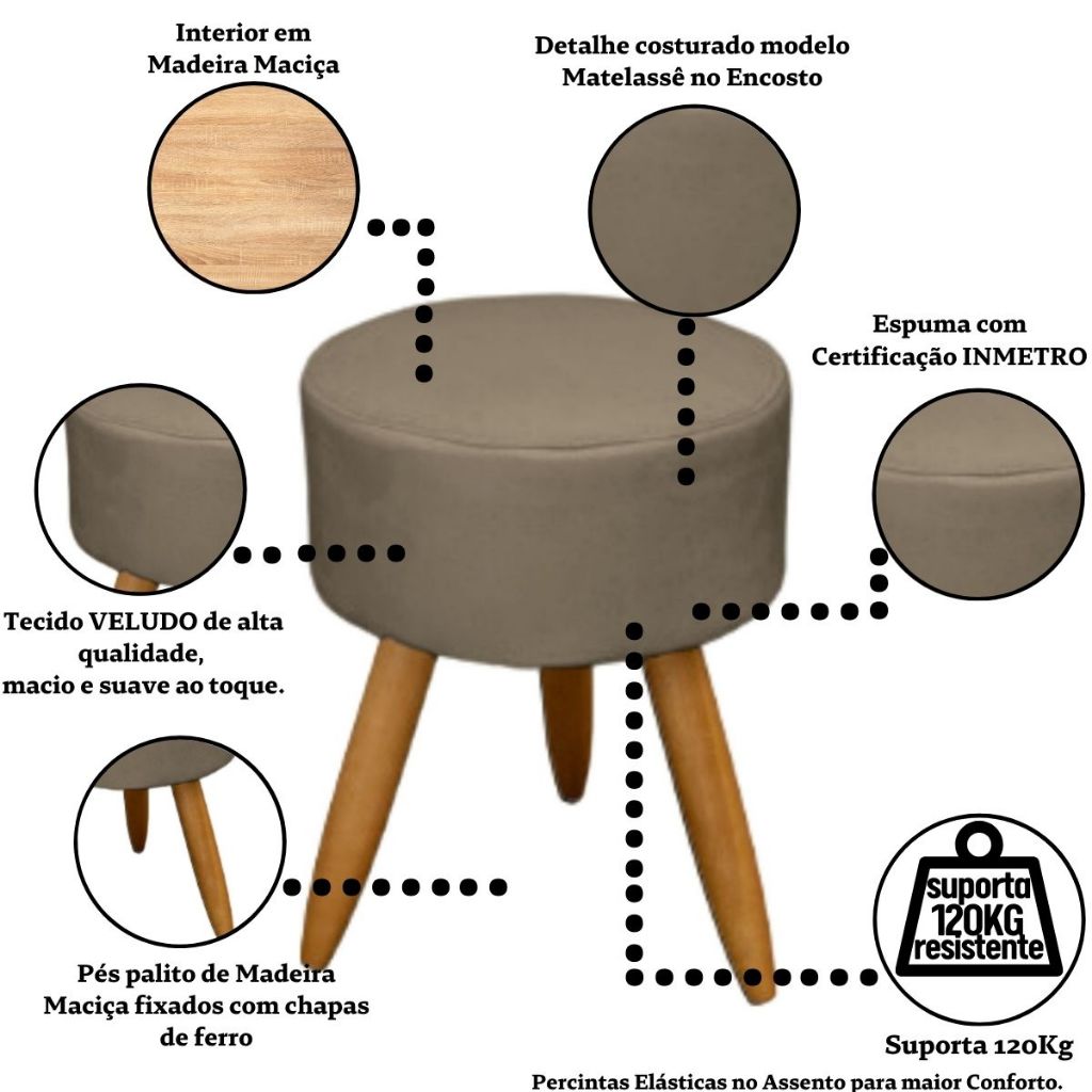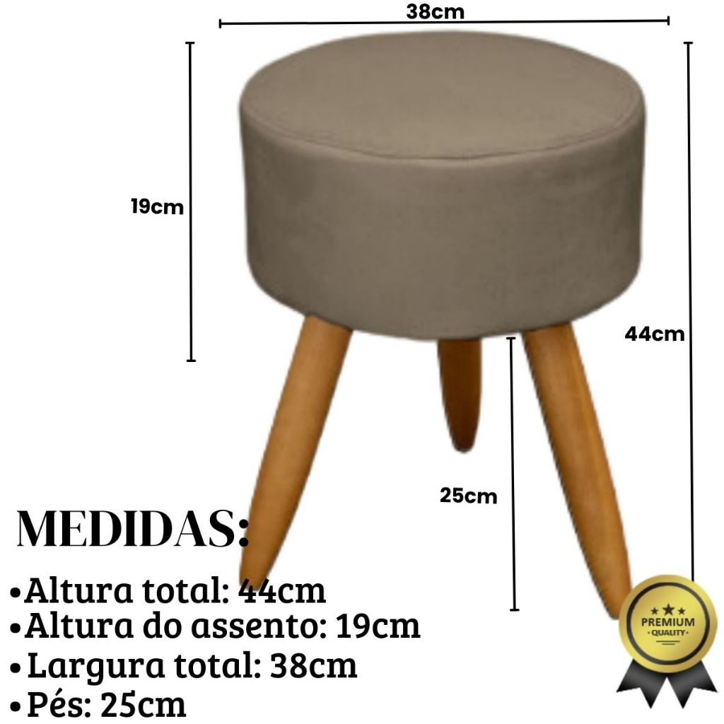 Puff liso redondo decorativo moderno resistente madeira pés Palito