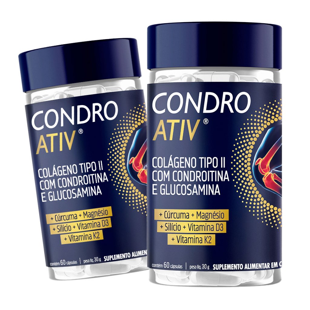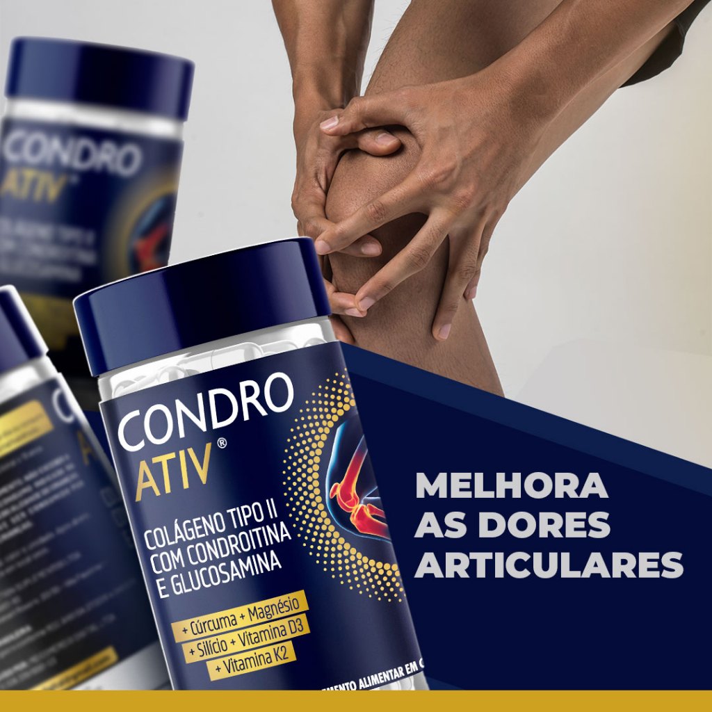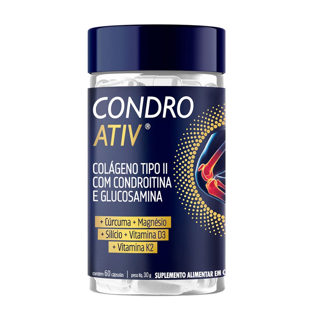 Condro Ativ Colageno Tipo 2 c/ Glucosamina e Condroitina 60 capsulas Articulações