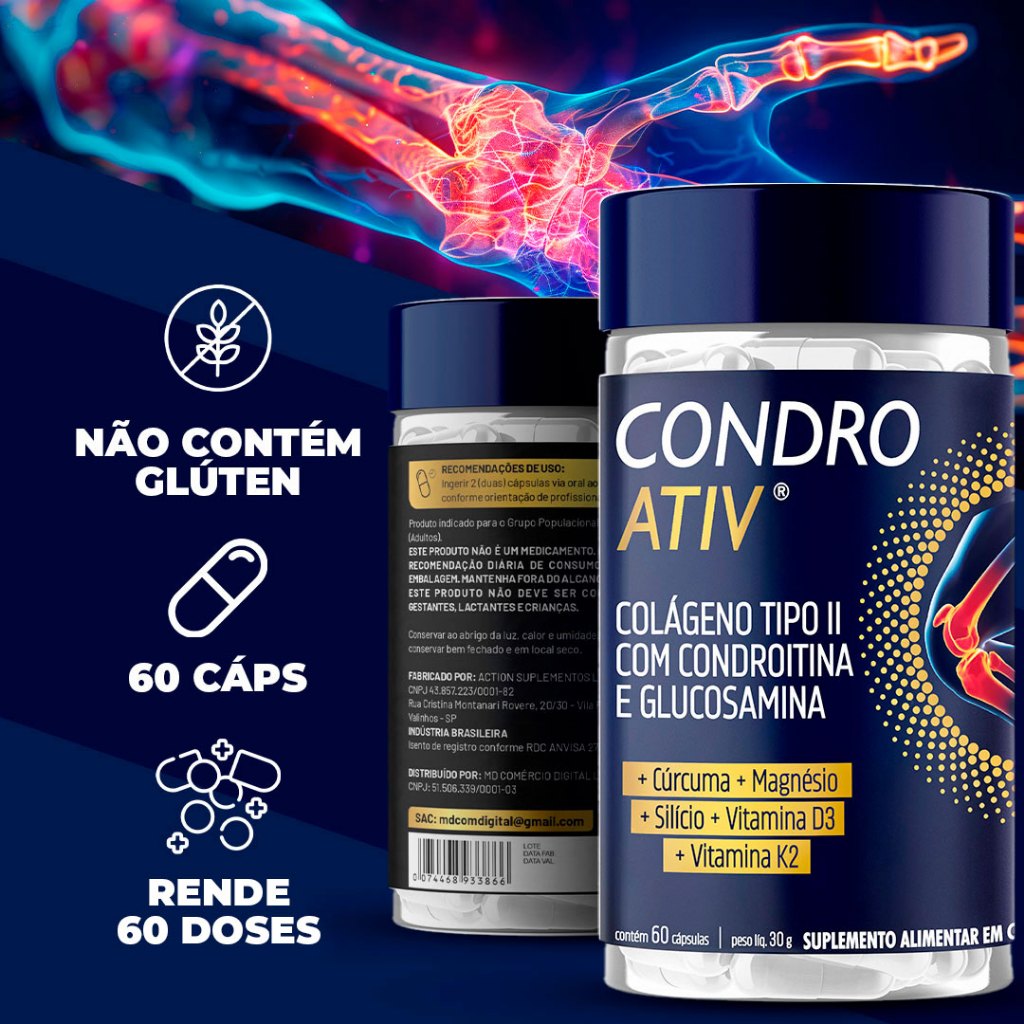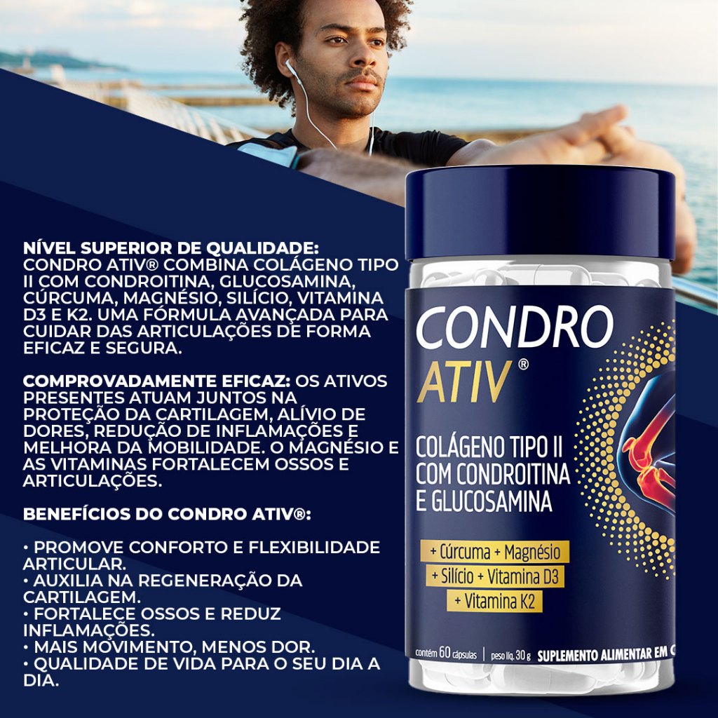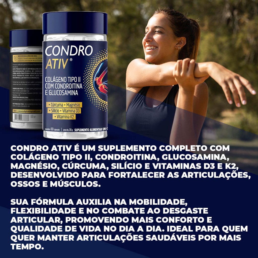 Condro Ativ Colageno Tipo 2 c/ Glucosamina e Condroitina 60 capsulas Articulações