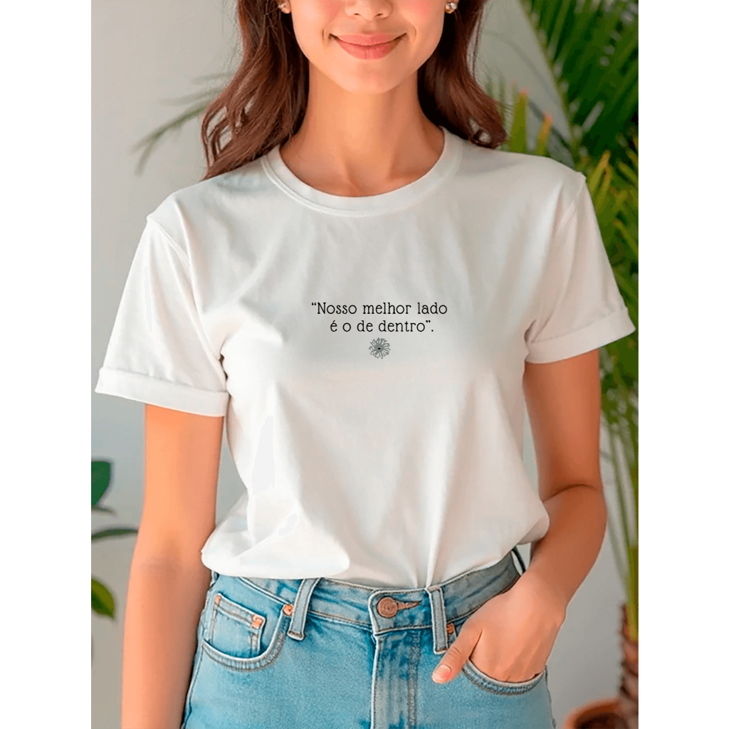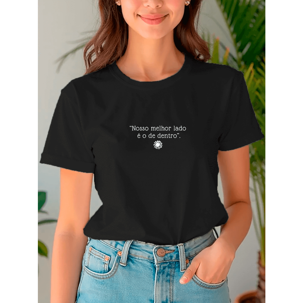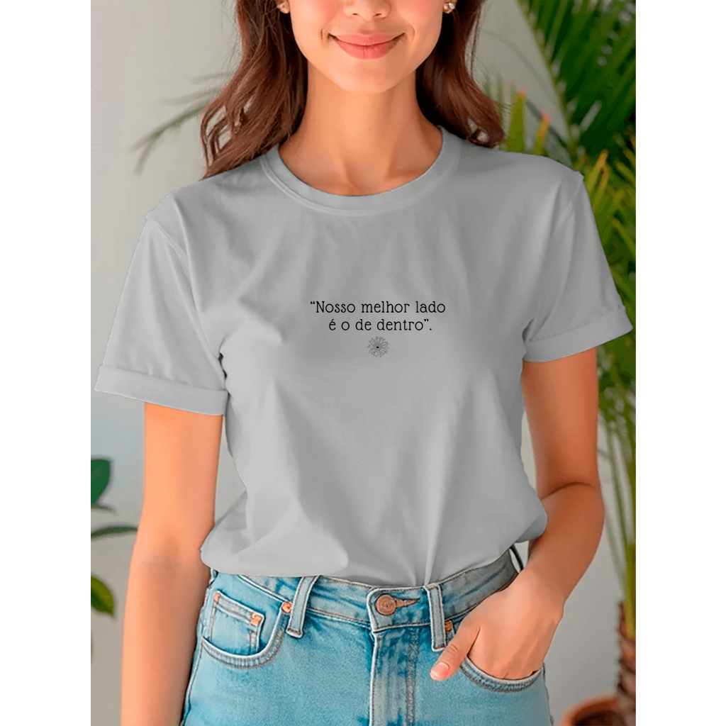 Camiseta Babylook Feminina Tshirt Nosso Melhor Lado É O De Dentro Amor Próprio Flor Frases Várias Cores 100% Algodão
