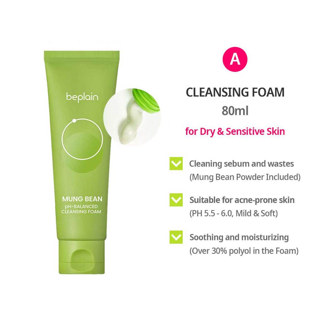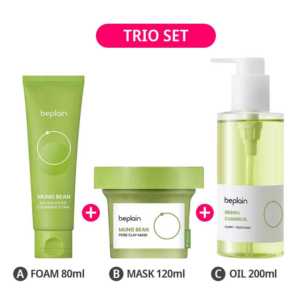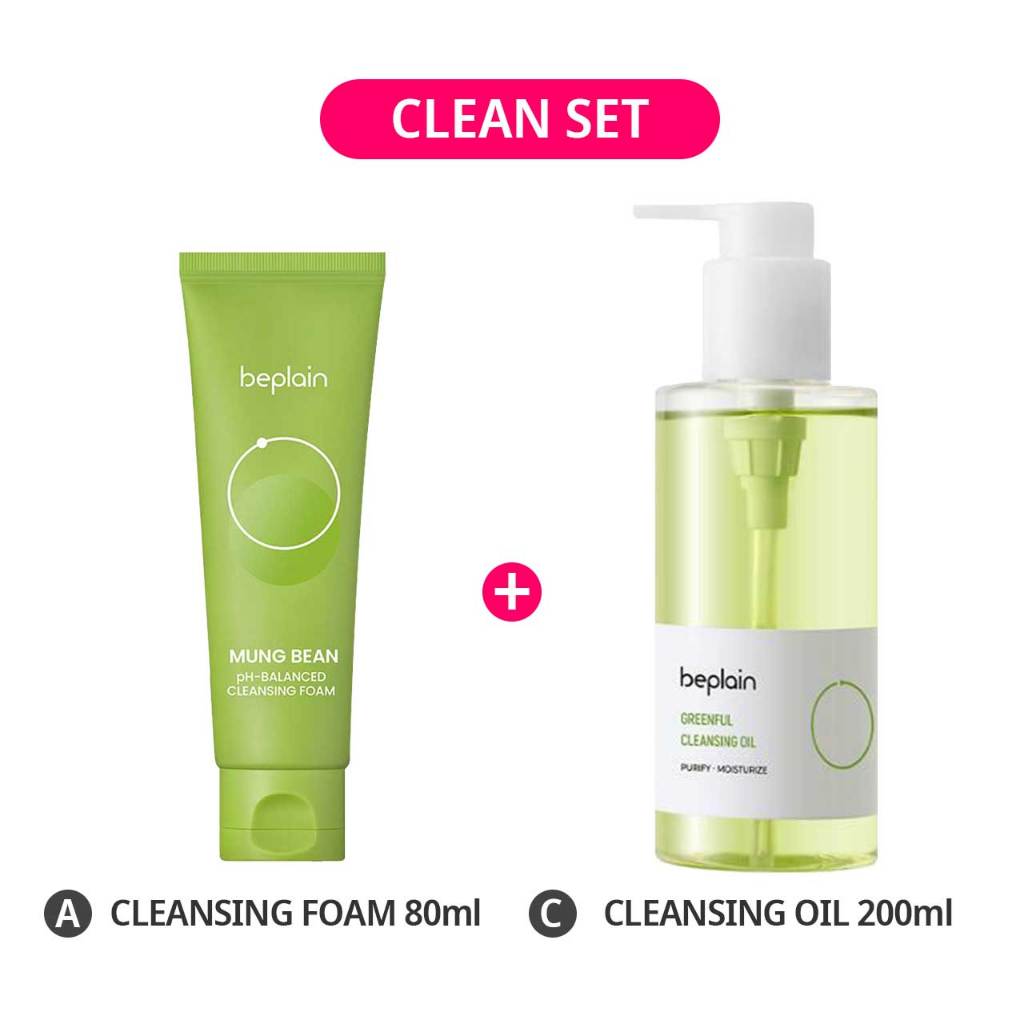 [Beplain] Espuma De Limpeza De Feijão Mungo 80ml/Máscara De Argila De Poros 120ml/Óleo 200ml (Único/Pacote/Conjunto) Olive Young Korea