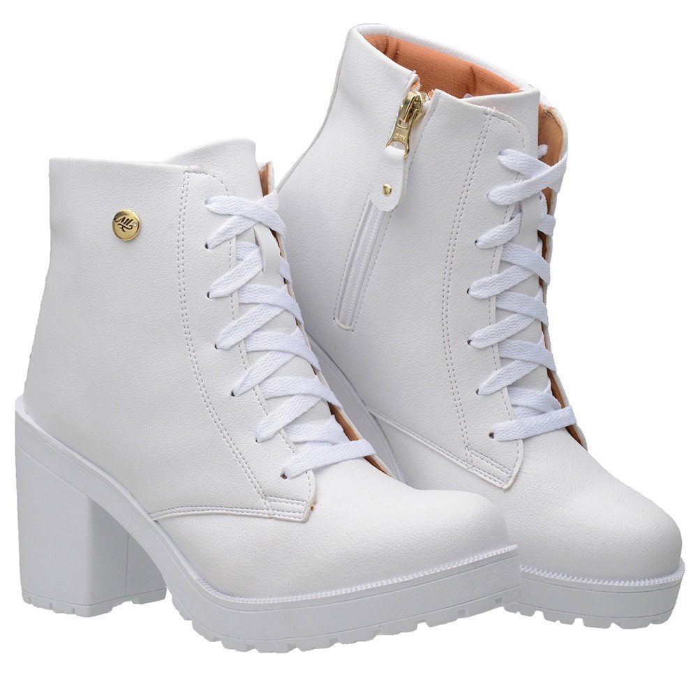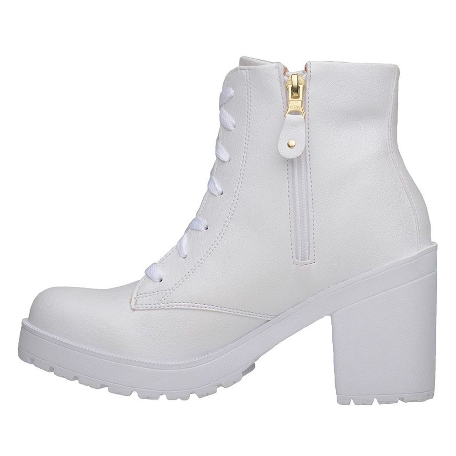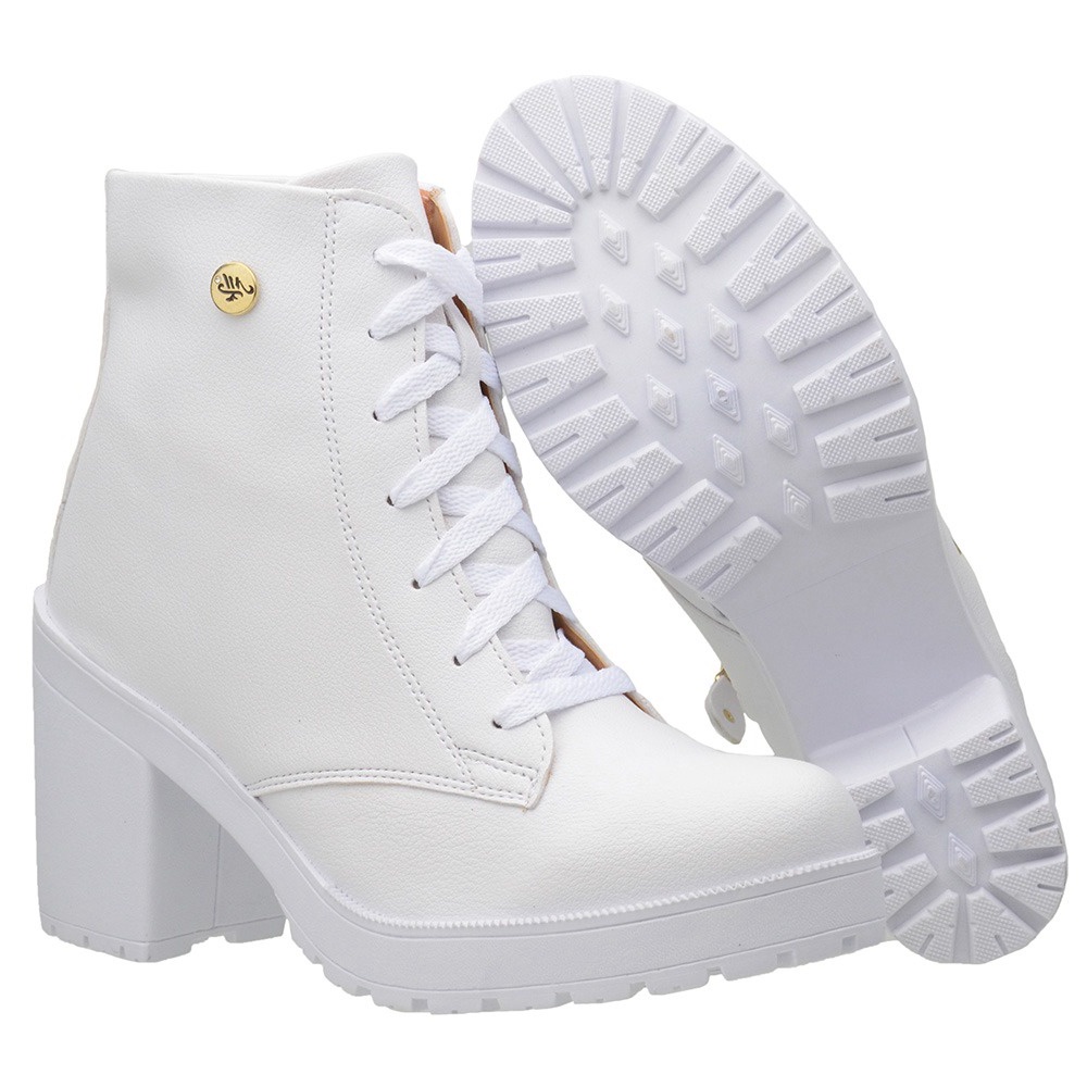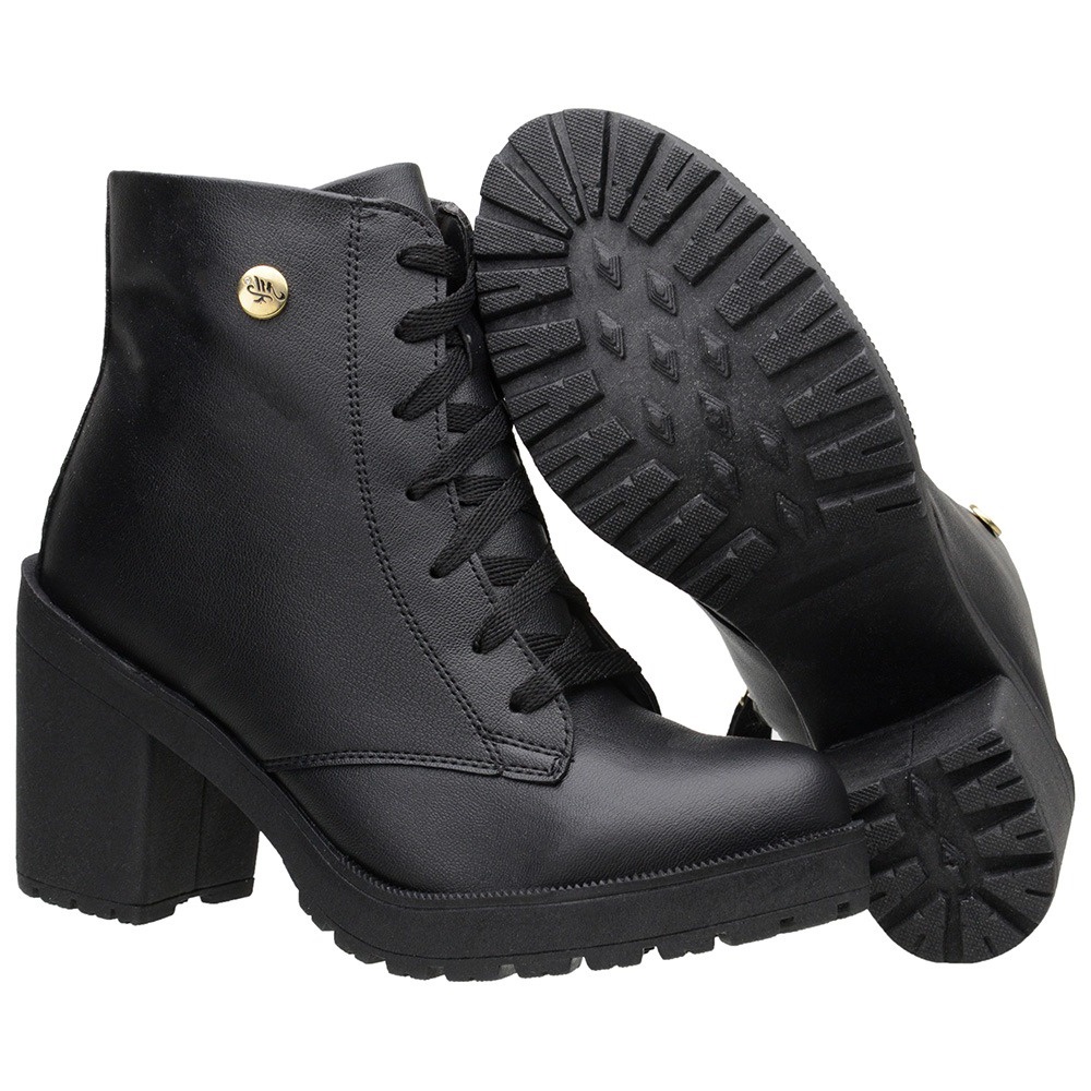 Bota Feminina Coturno Cano Curto Verniz Tratorada Salto Alto