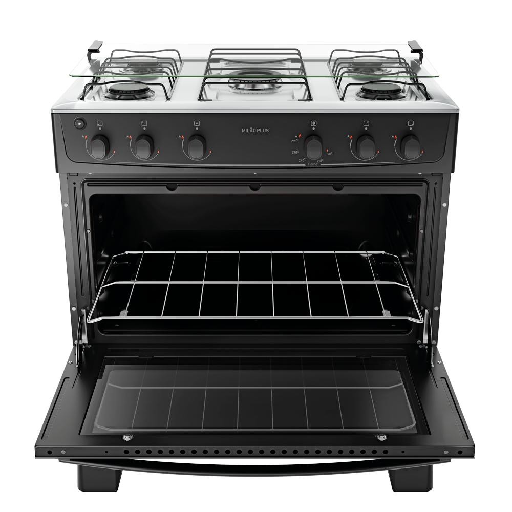 Fogão 5 Bocas Atlas Milão Plus Preto com Mesa de Inox a Gás Bivolt