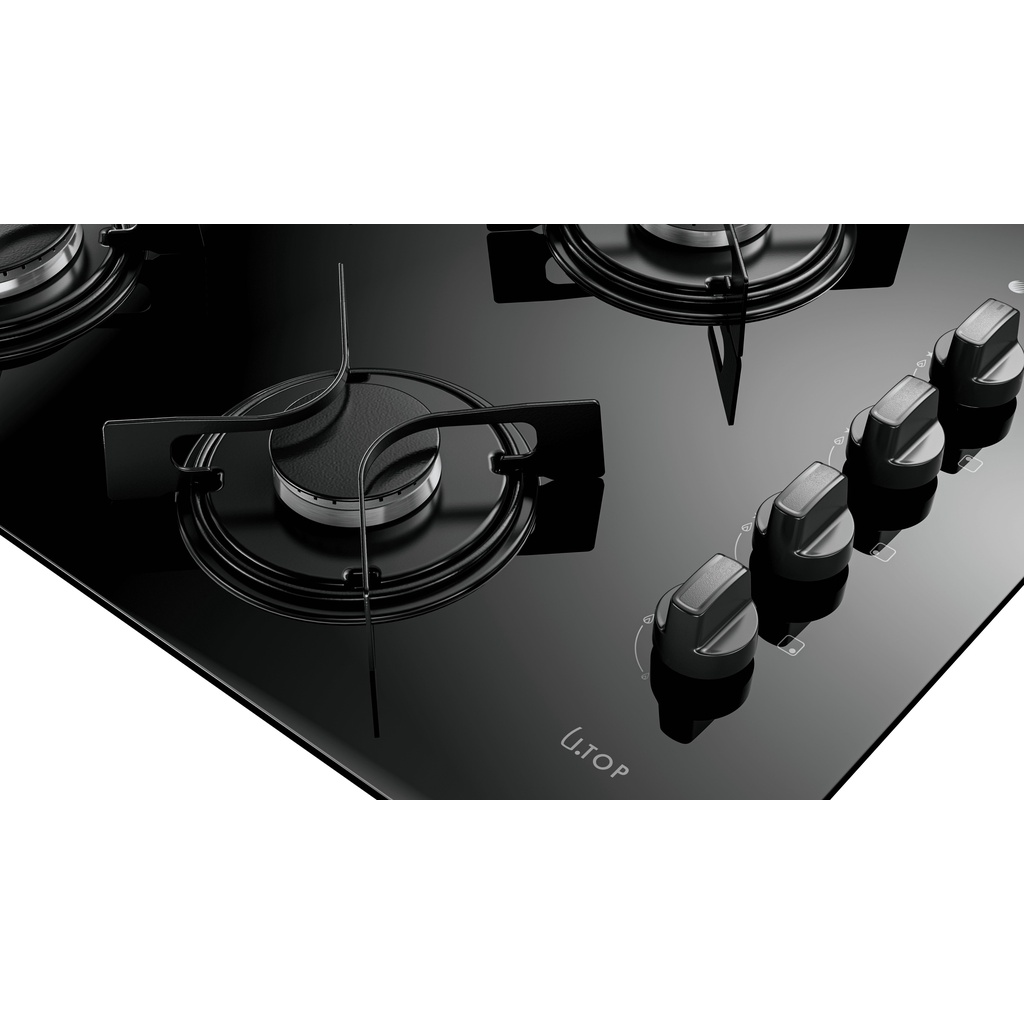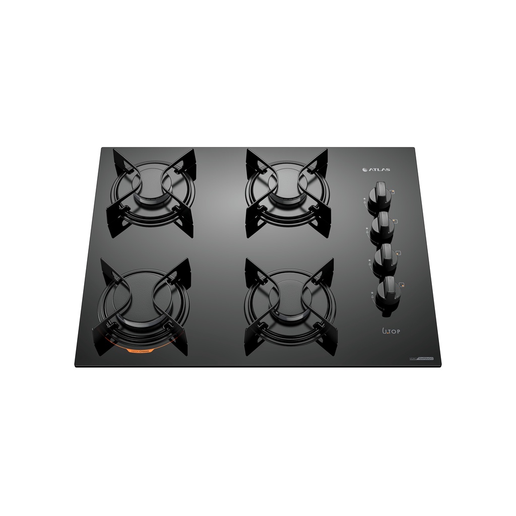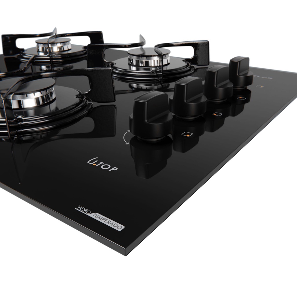 Cooktop 4 Bocas Preto com Mesa de Vidro Atlas U Top Bivolt