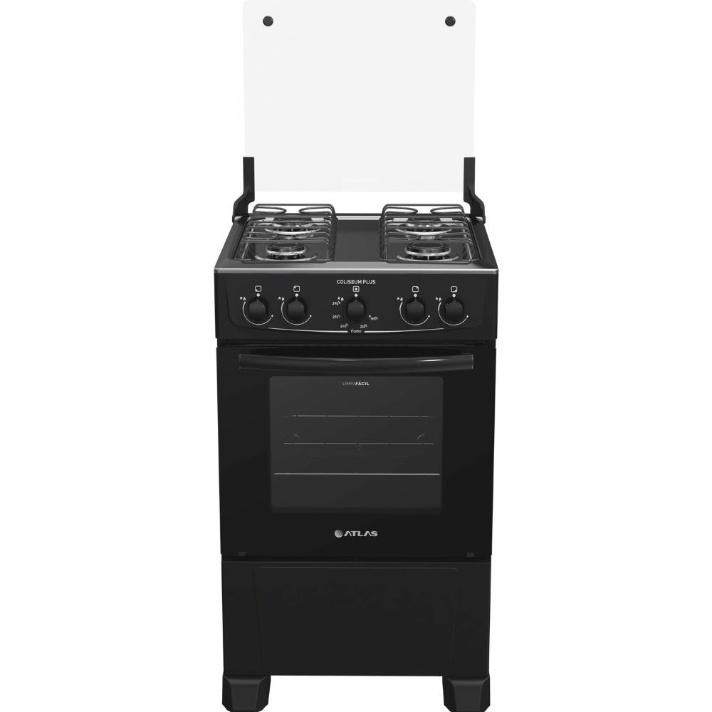 Fogão Atlas 4 bocas preto com forno limpa fácil Coliseum Plus - Forno 50L