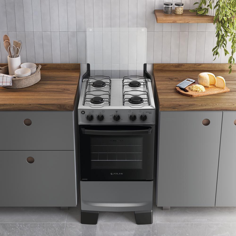 Fogão 4 Bocas Atlas Mônaco Plus Mesa de Inox Bivolt