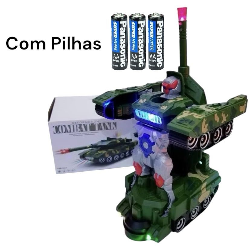 Brinquedo Carrinho Carro Tank Tanque Vira Robô Caminhão Bate E Volta Com Projeção Luz E Sons HM TOYS