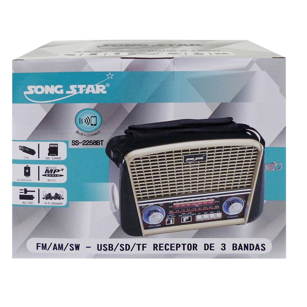 Radio Song Star2258UBT Com Lanterna Bluetooth Am Fm Usb Aux Sd Caixa De Som Antena Analogico-HM TOYS