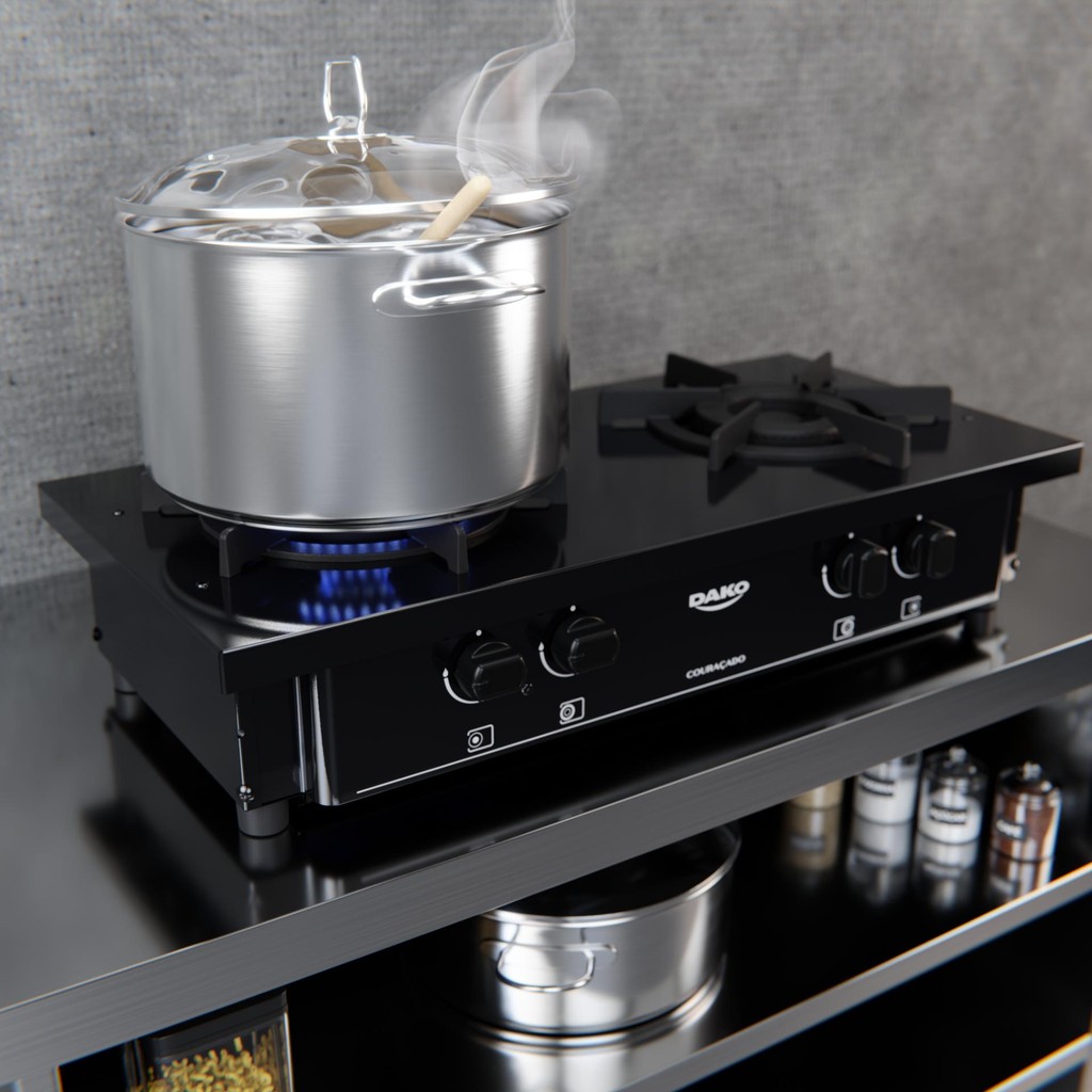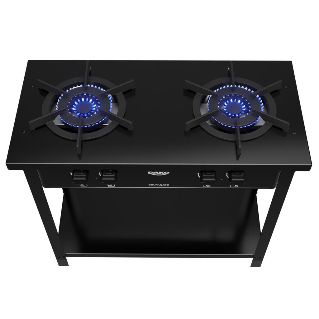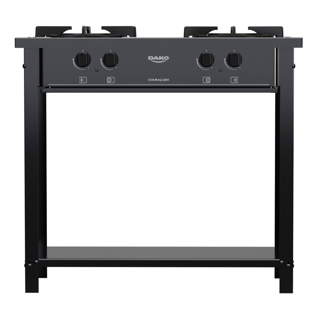 Fogão Industrial 2 Bocas Dako Couraçado Preto com Dupla Chama e Pés Removíveis