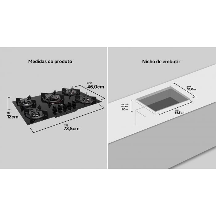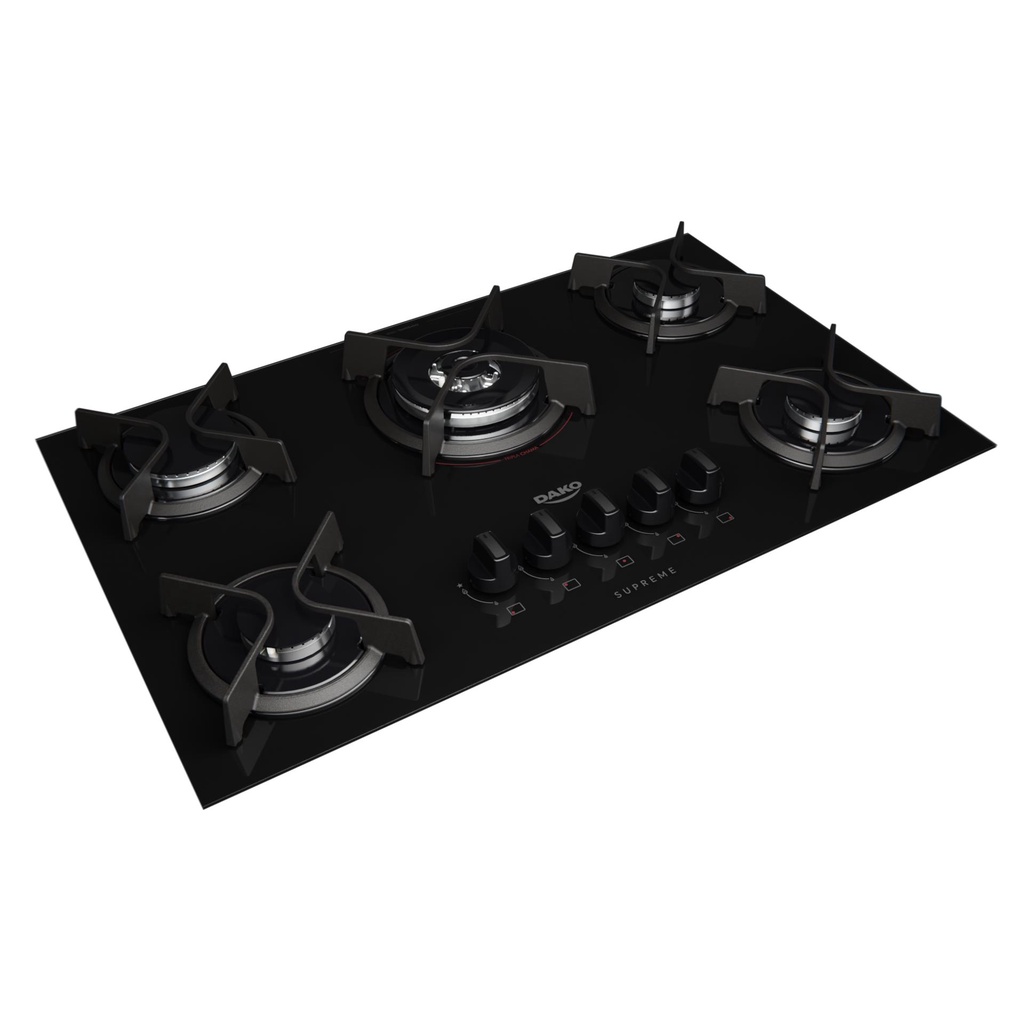 Cooktop 5 Bocas Preto com Mesa de Vidro e Tripla Chama Dako Supreme Bivolt