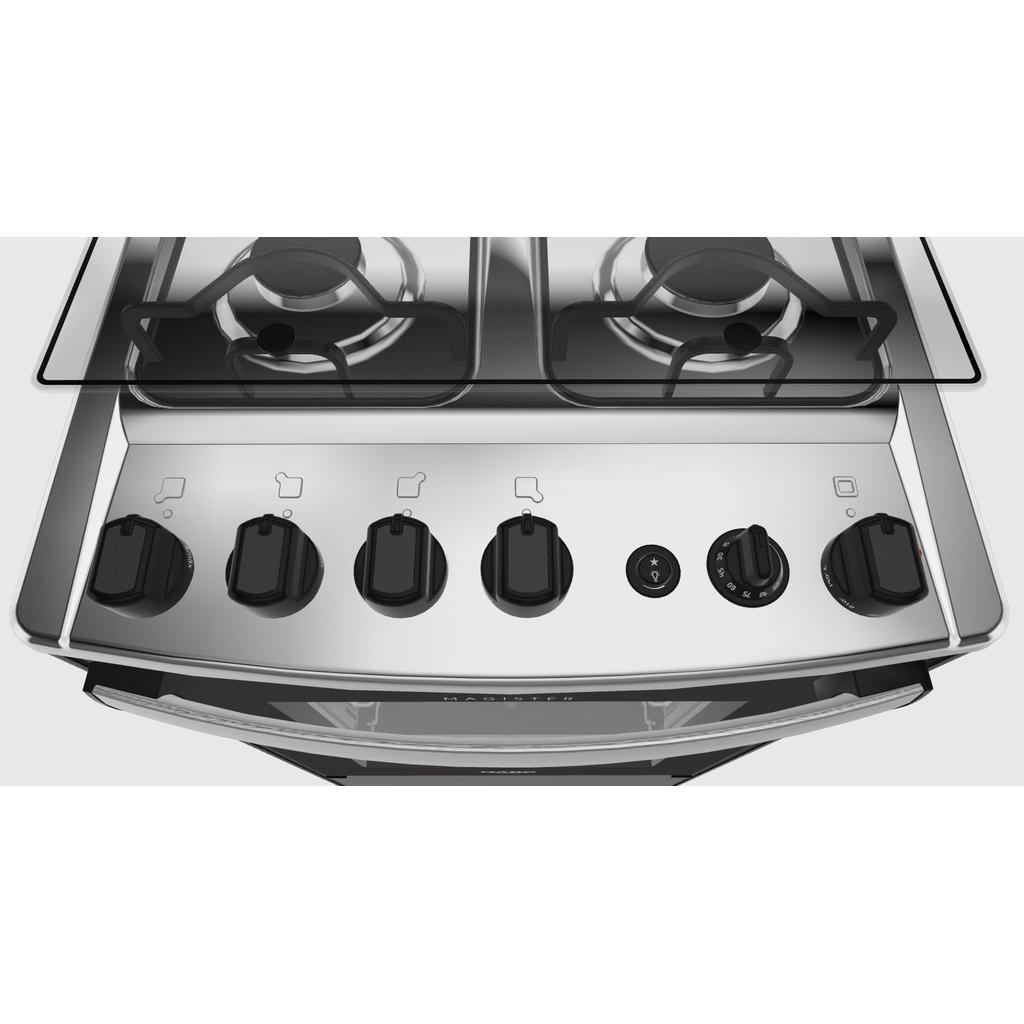Fogão 4 Bocas Dako Magister Grill Preto Mesa Inox Bivolt