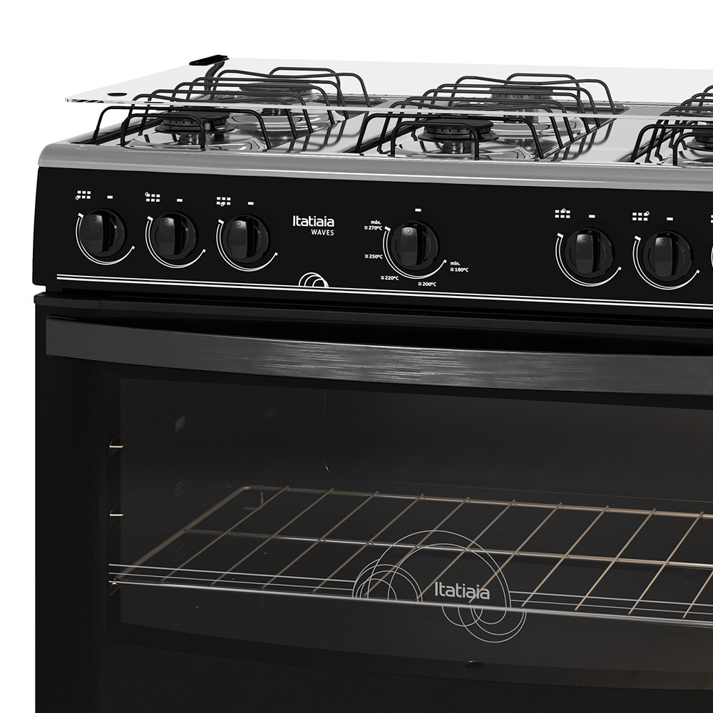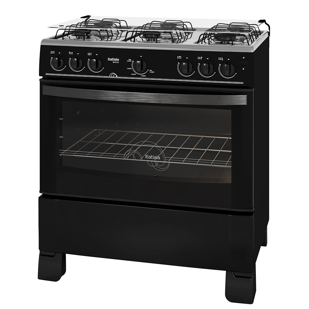 Fogão de Piso 6 Bocas à Gás Itatiaia Waves com Acendimento Automático Preto Bivolt