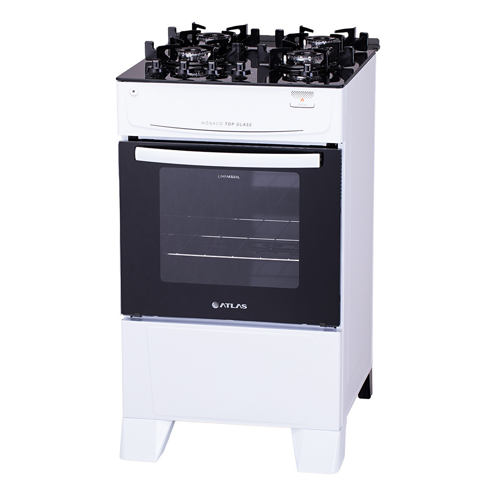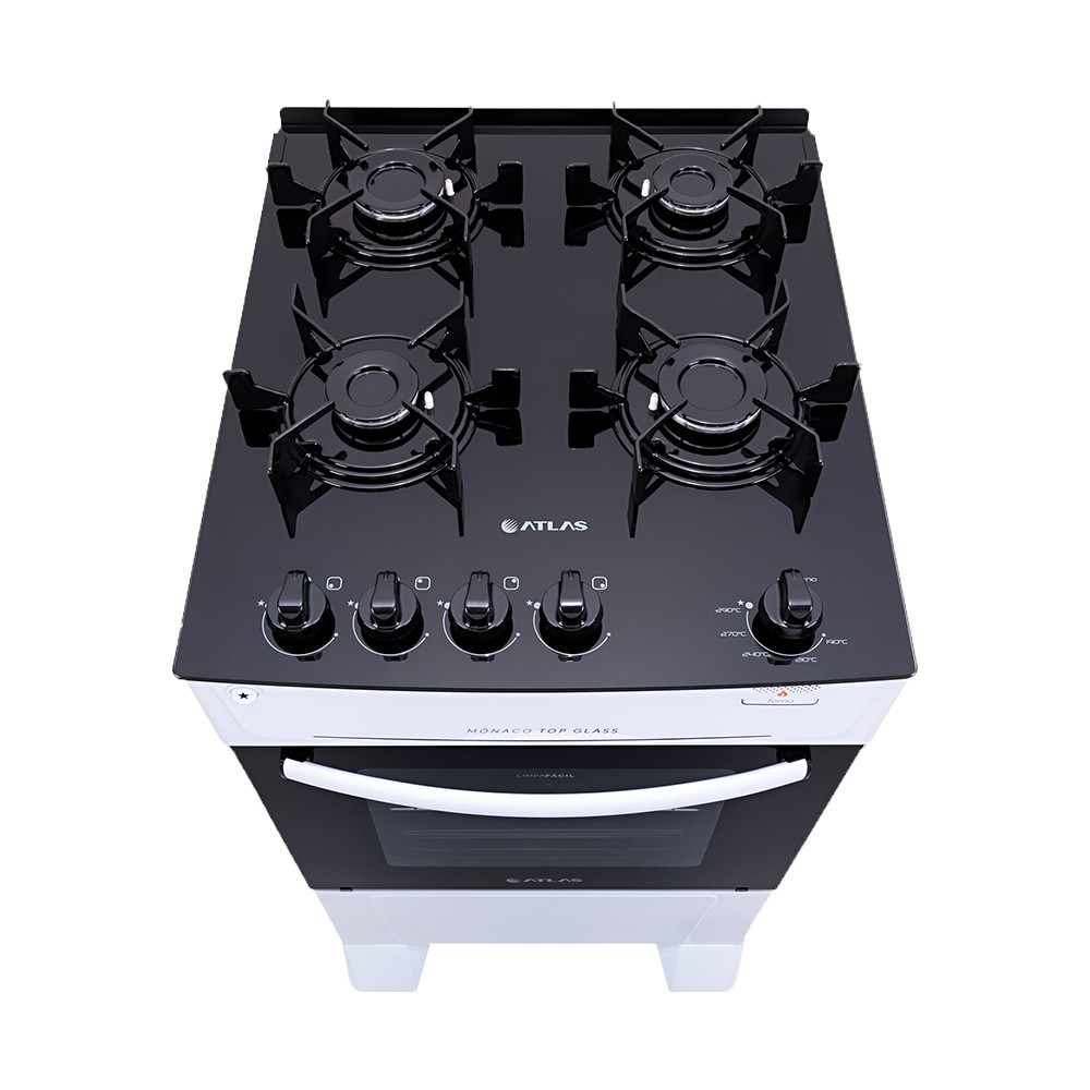 Fogão 4 Bocas a Gás Atlas Mônaco Top Glass Mesa de Vidro e Acendimento Automático Branco Bivolt