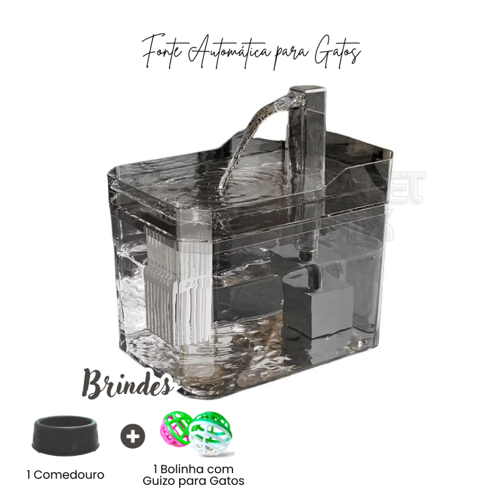 Fonte Para Gatos Automática Bebedouro Purificador de Água Bivolt Com Filtro + Comedouro Promoção