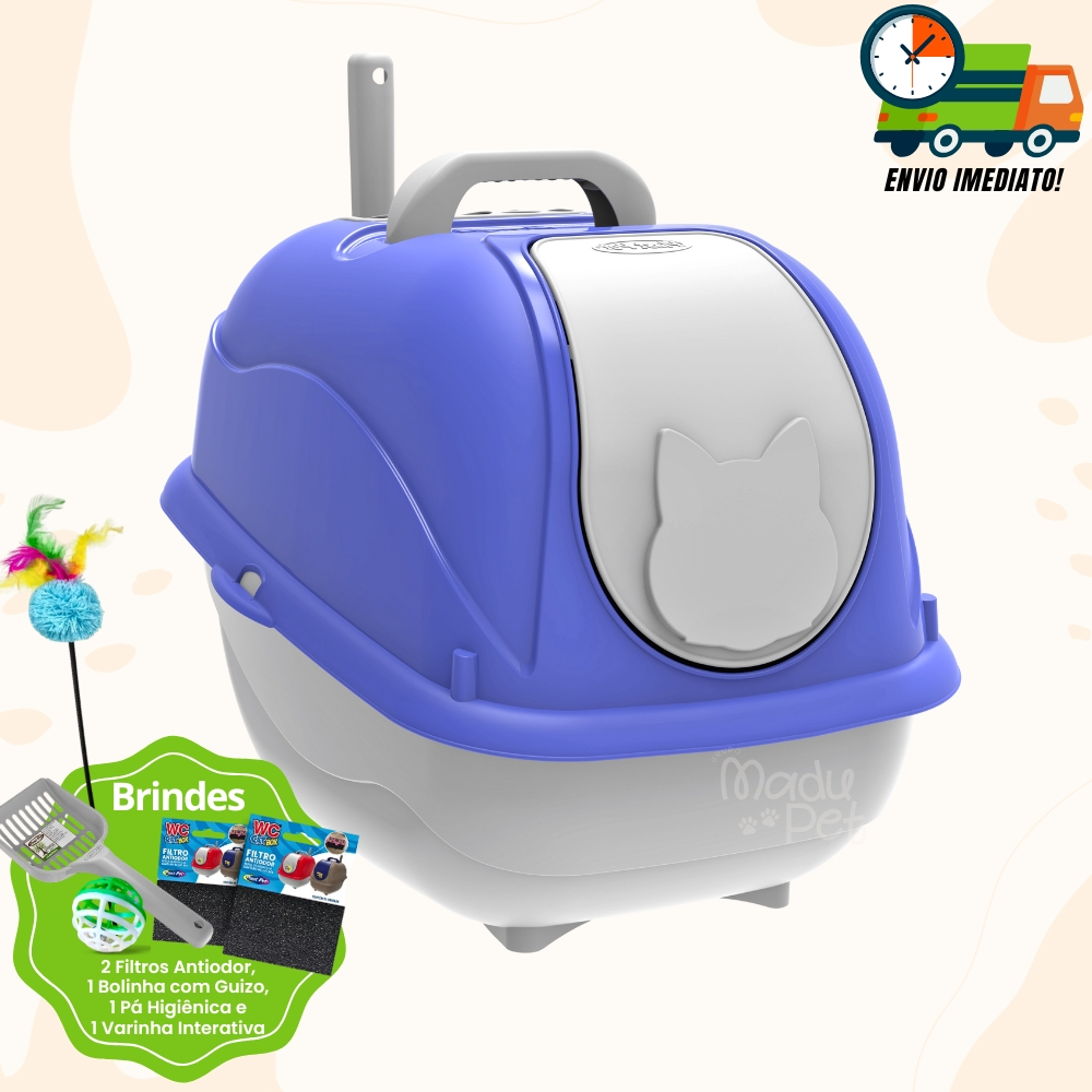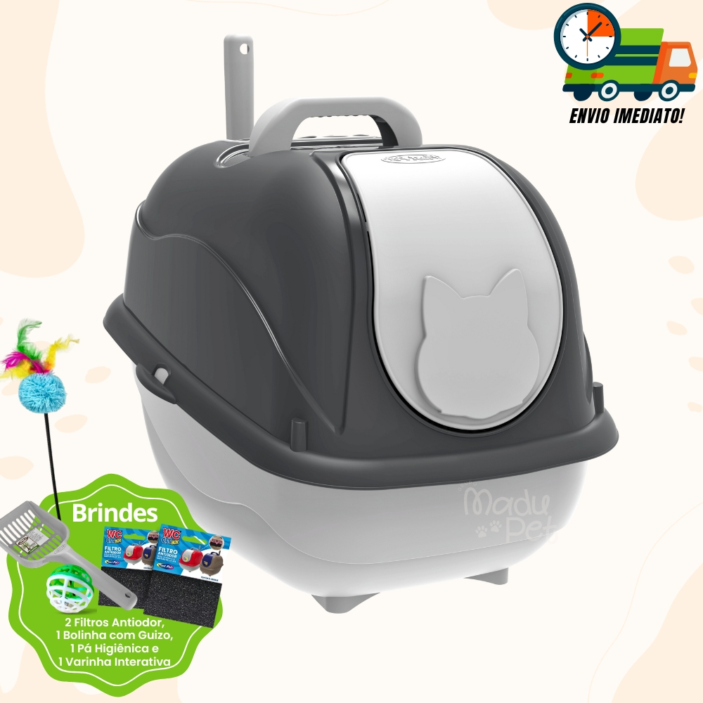 Caixa de Areia para Gatos Fechado Banheiro Higiênico Box Luxo + Pá e Filtro Promoção Envio Imediato