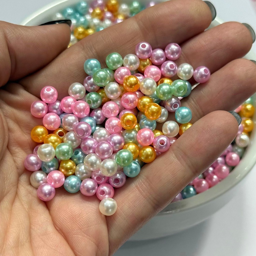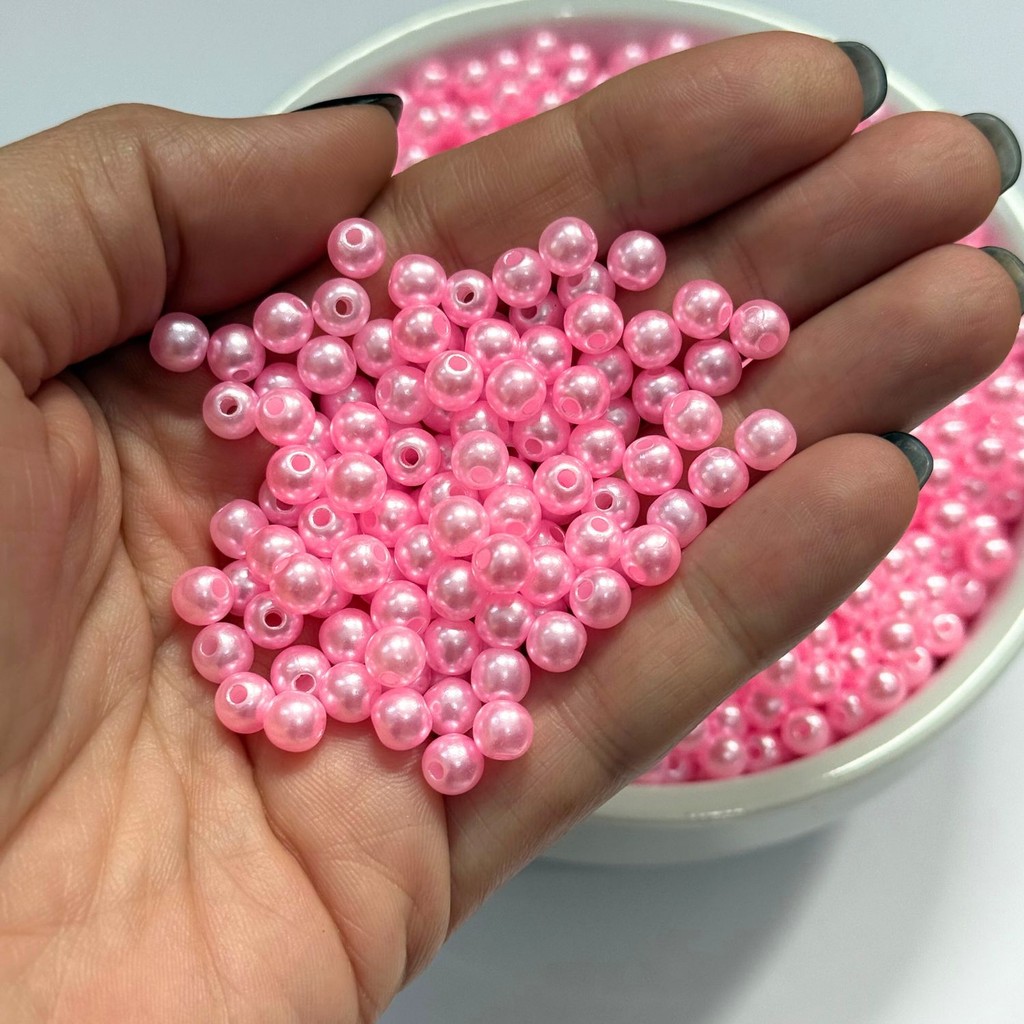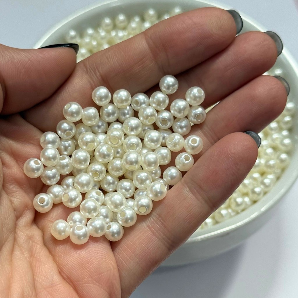 Pérola 8mm ABS 8mm 100 Unidades Miçangas Inteira Furo Passante Artesanato Bijuteria