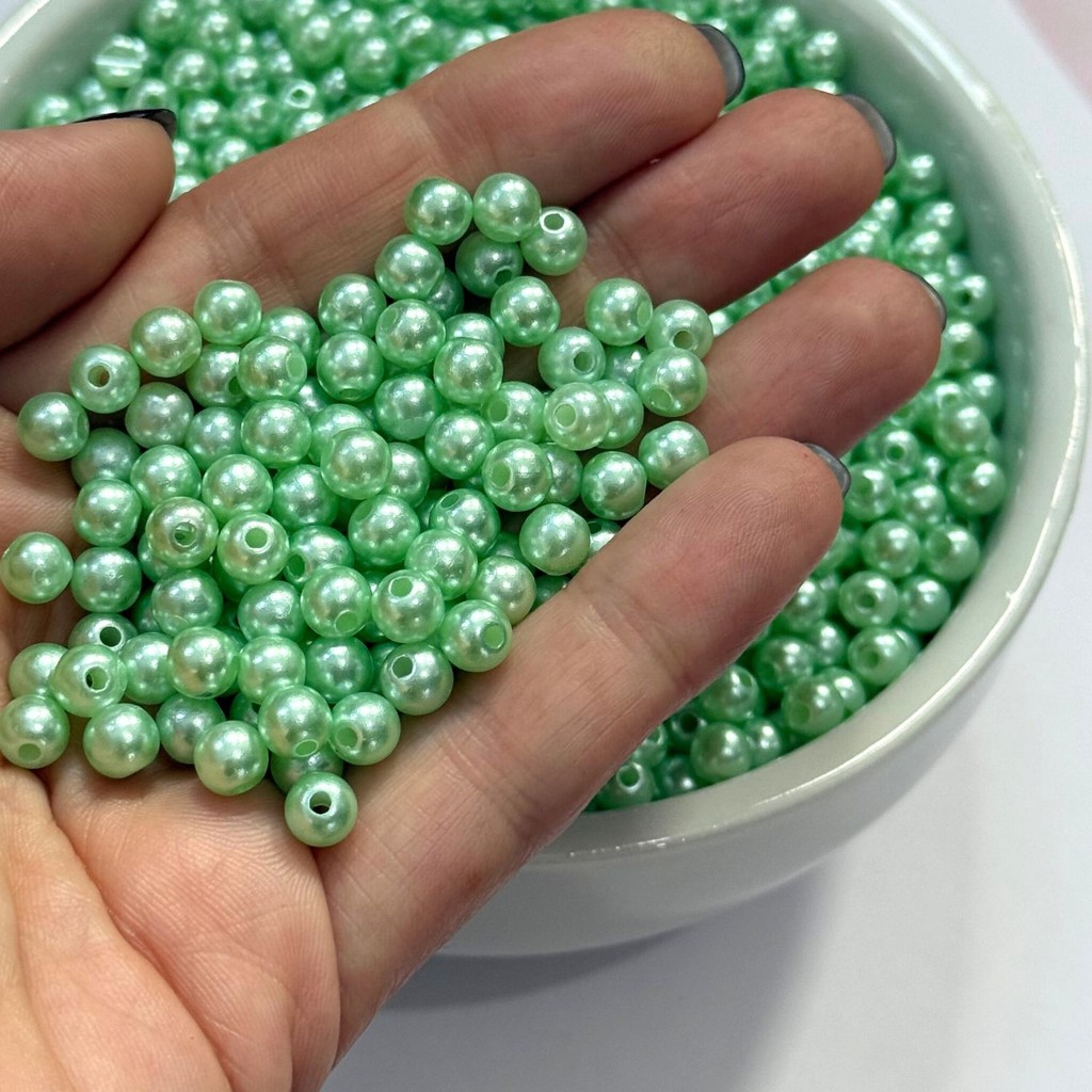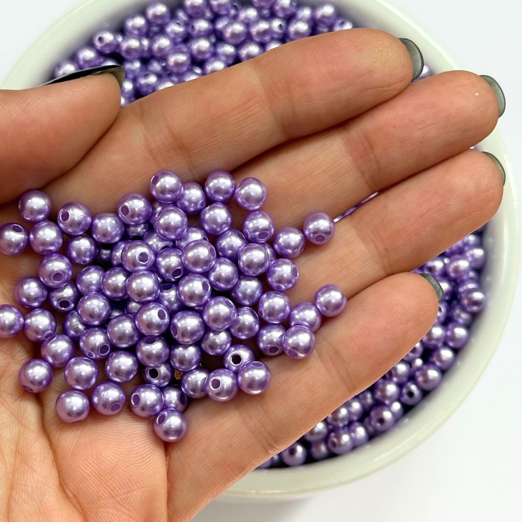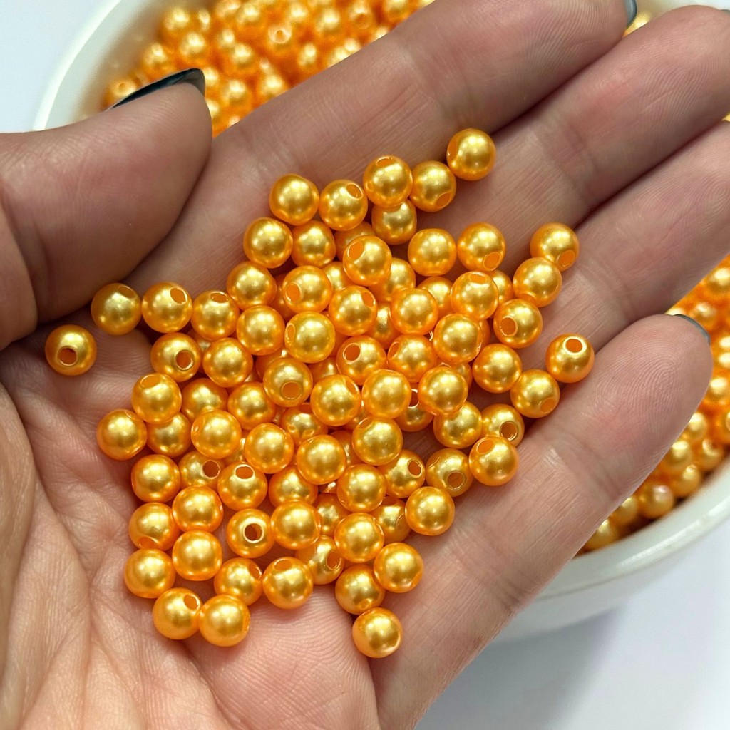 Pérola 8mm ABS 8mm 100 Unidades Miçangas Inteira Furo Passante Artesanato Bijuteria
