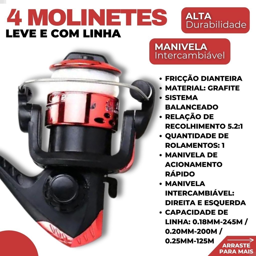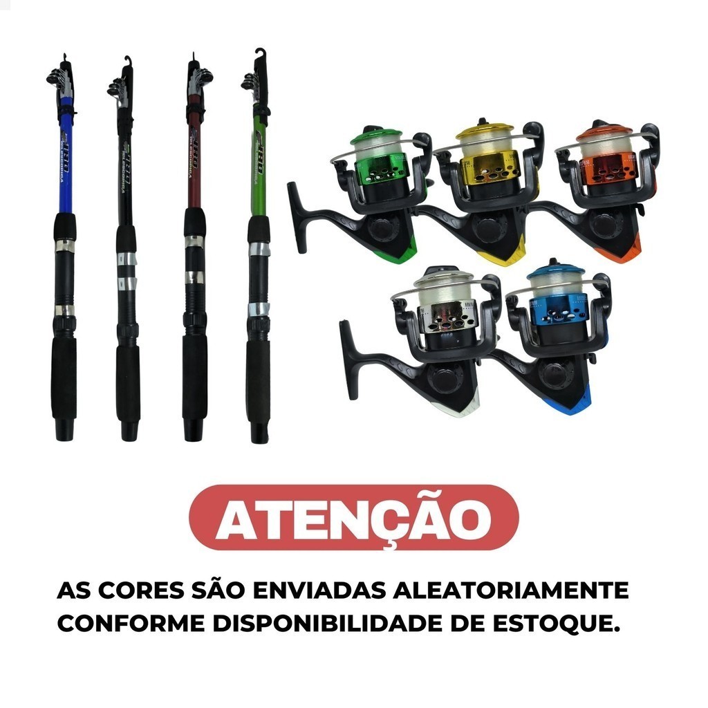 Conjunto De Pesca Completo 4 Vara Telescópica Fibra Vidro E 4 Molinete Com Linha Maleta + Acessórios