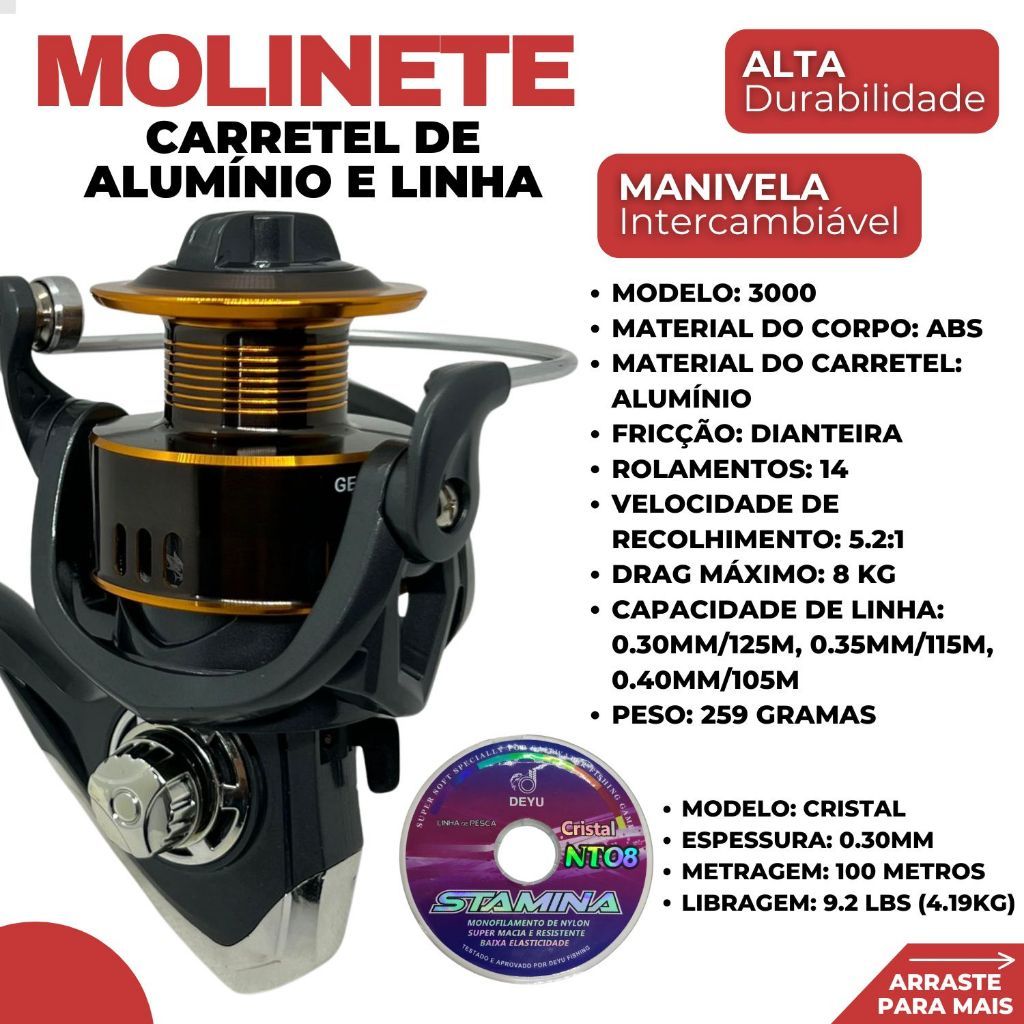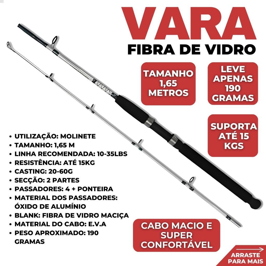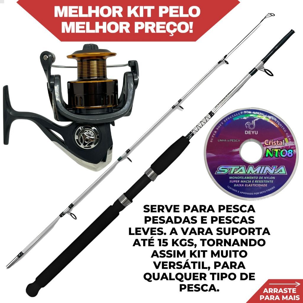 Kit De Pesca Completo Vara 1,65m Fibra Vidro Maciça E Molinete 3000 + Linha 100m