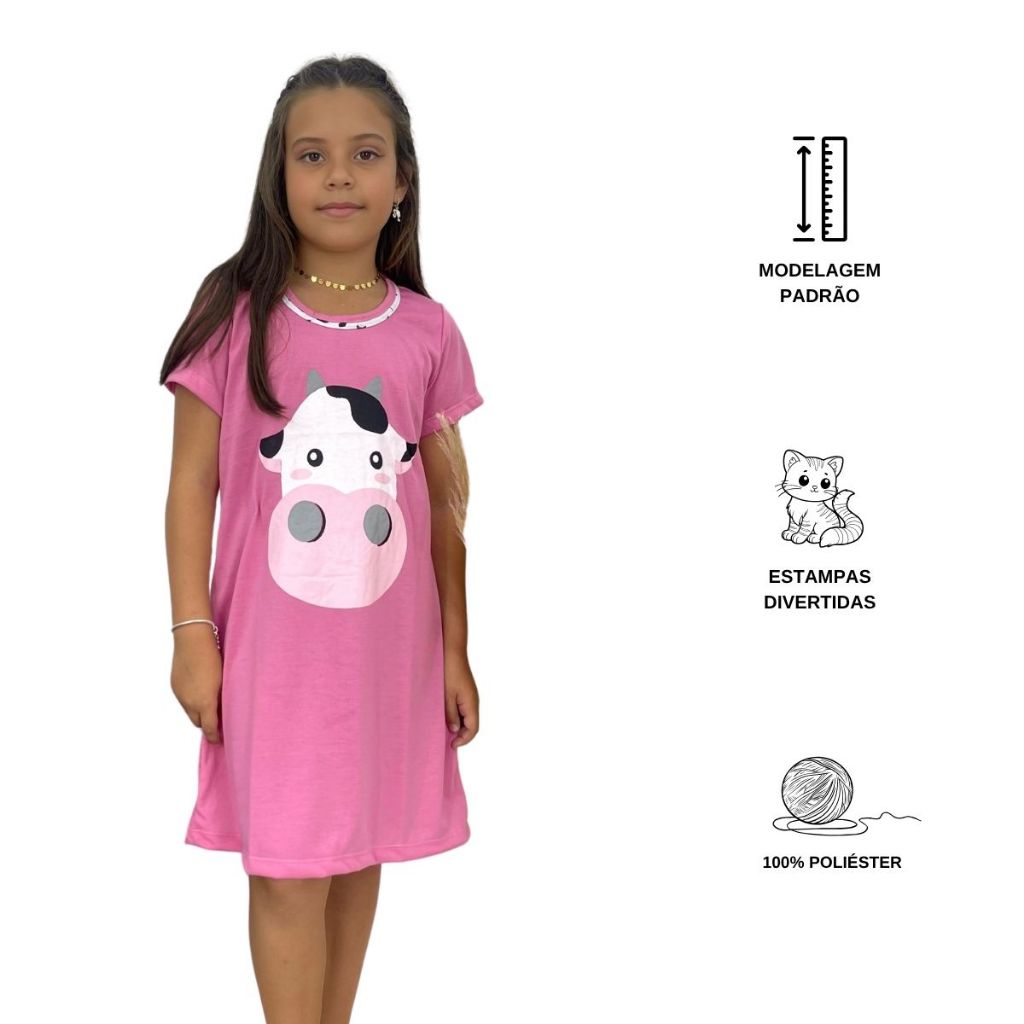 Camisola Infantil Personagem Manga Curta / Camisola de Dormir / Roupa de Dormir