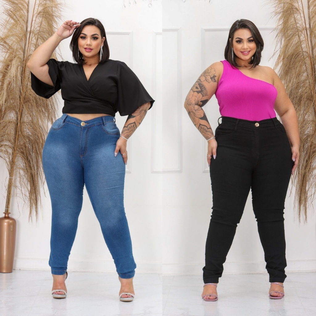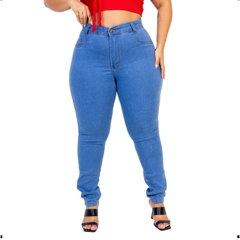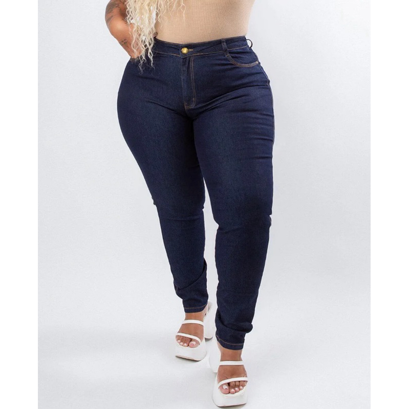 Calça Jeans Feminina Plus Size Cintura Alta Skinny com Lycra Marmorizada Empina Bumbum Confortável