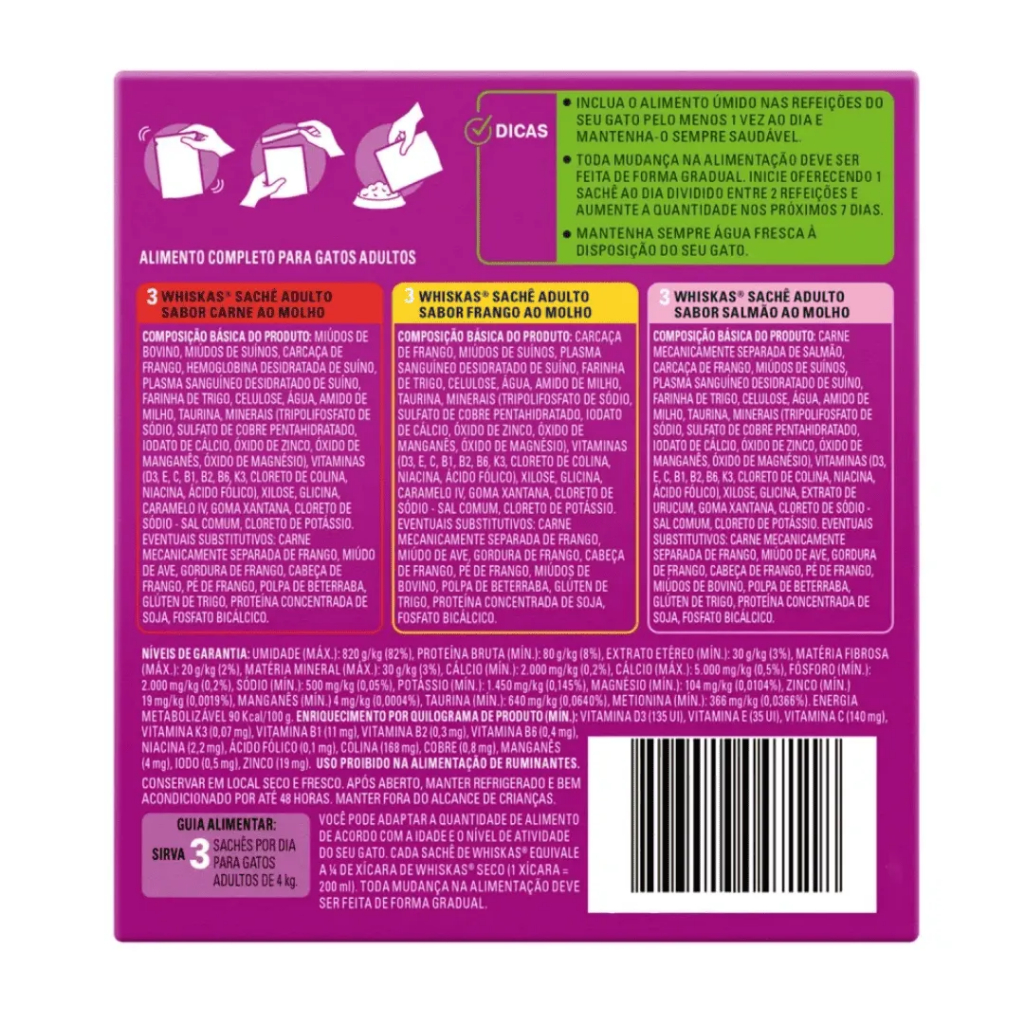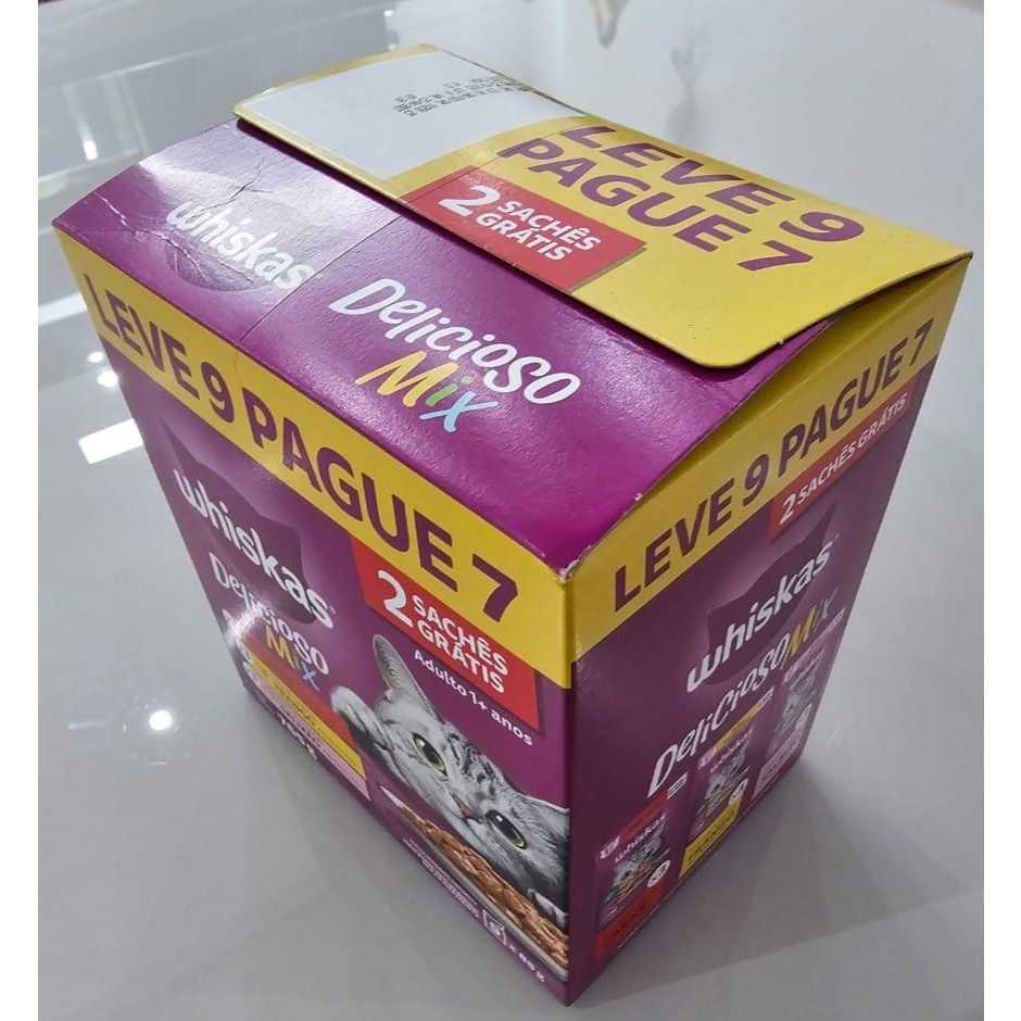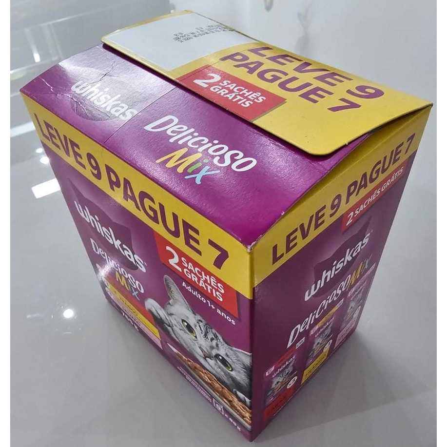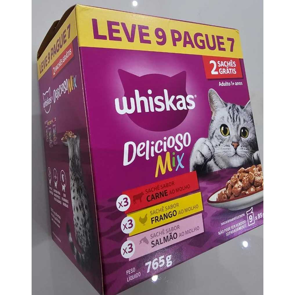 Ração Úmida Whiskas Sachê 3 Sabores Gatos Adultos Carne, Frango e Salmão Leve 9 Pague 7