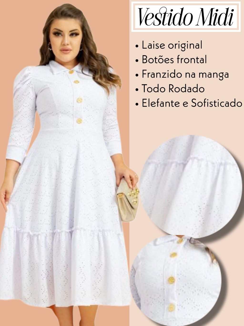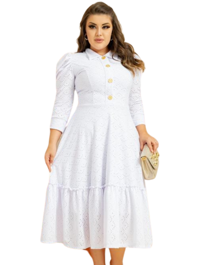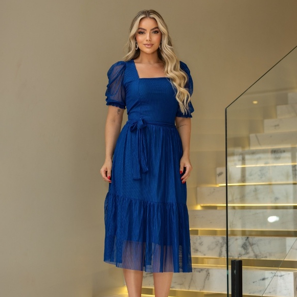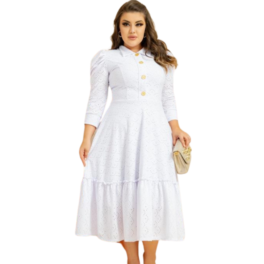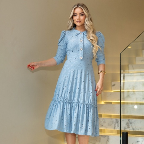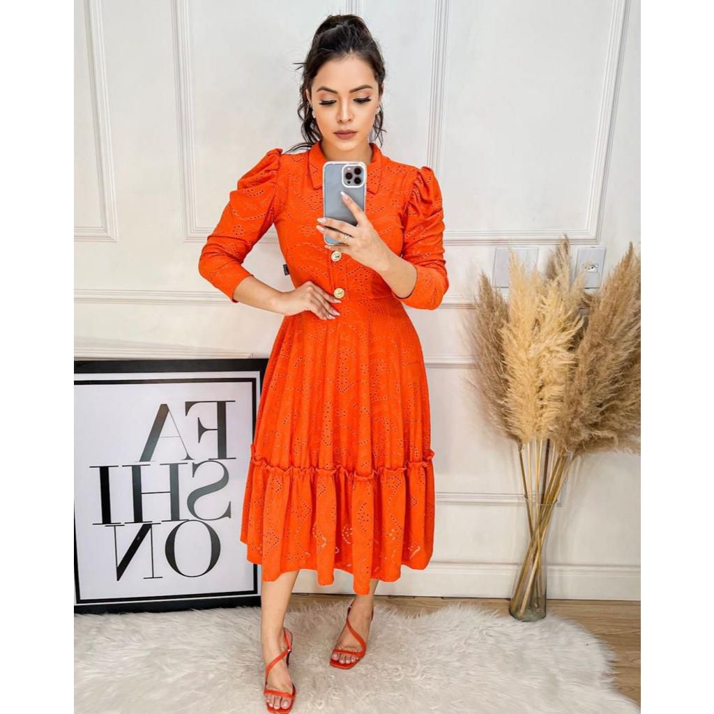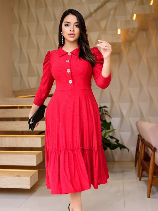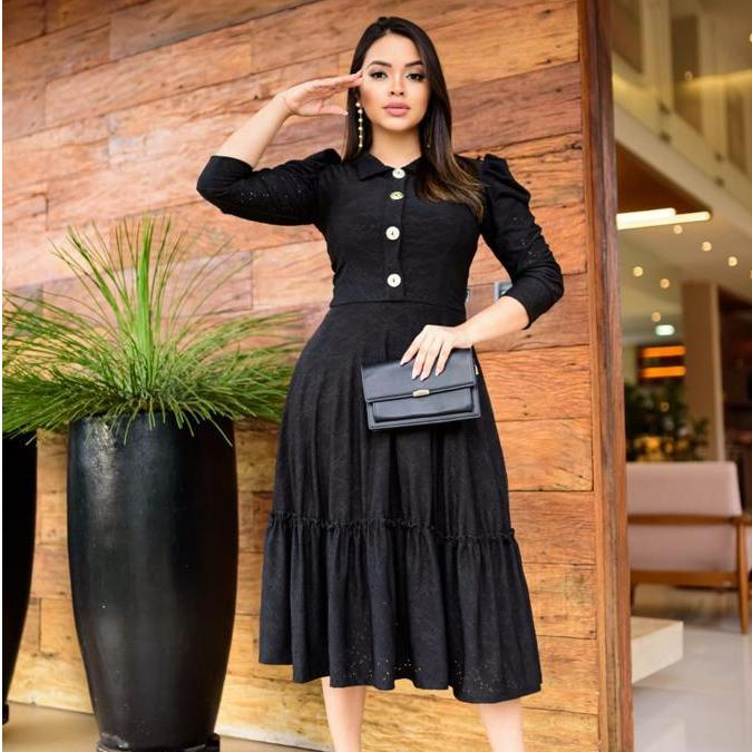 Vestido Feminino Mídi Godê Manga Longa Laise Original
