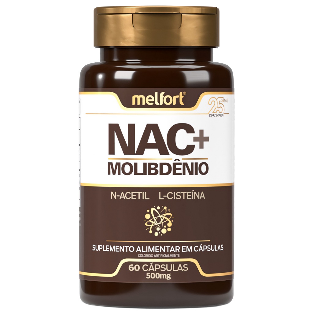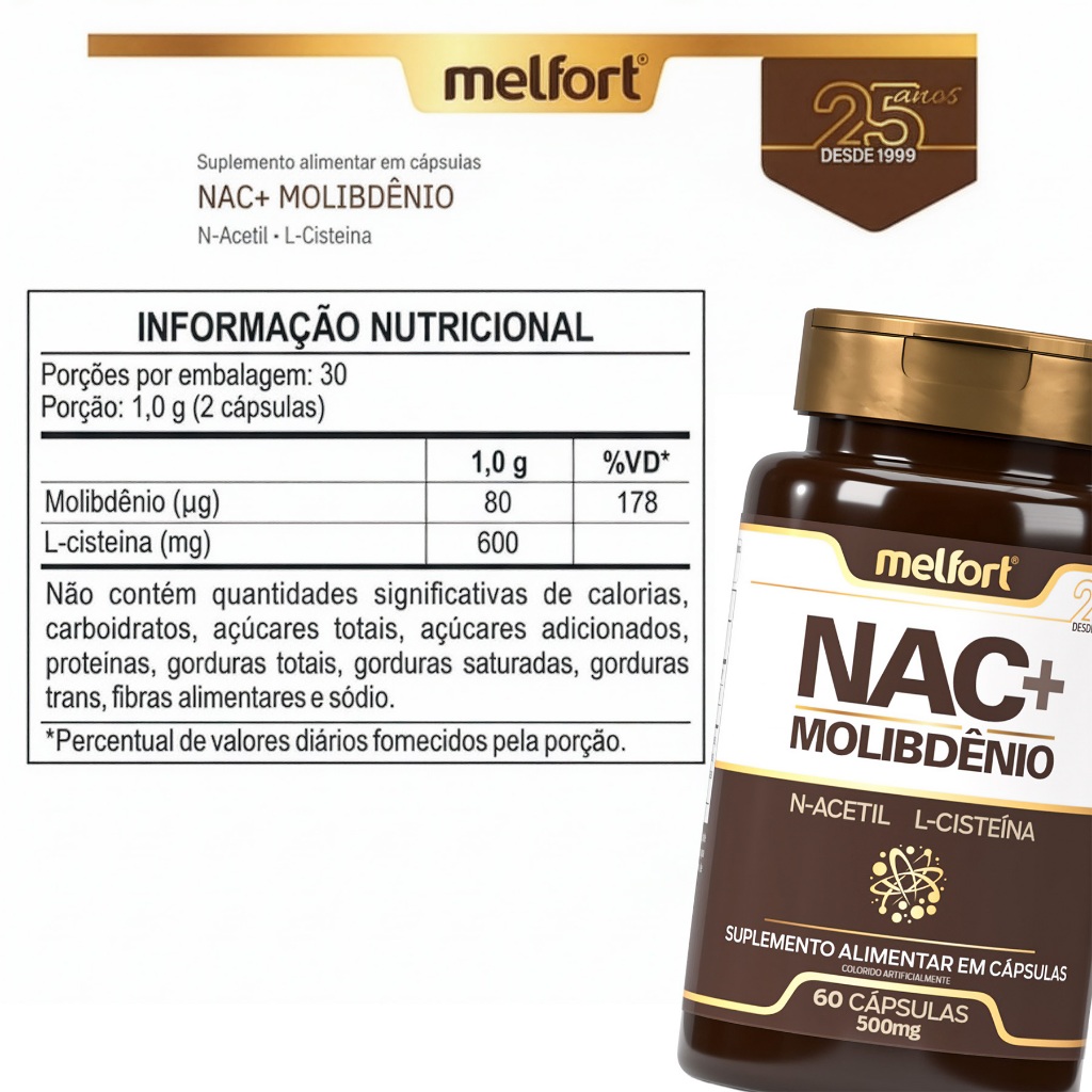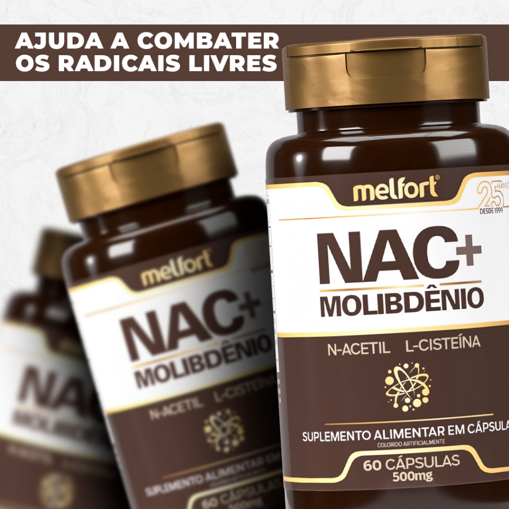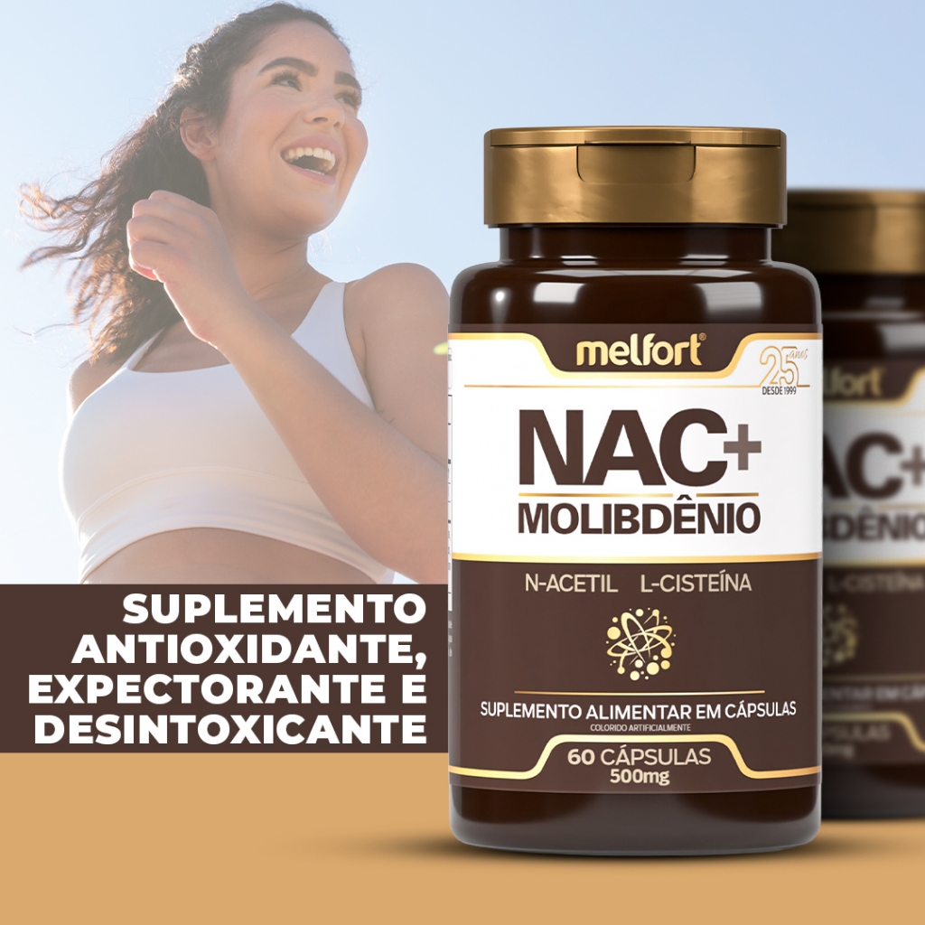 2x NAC + Molibdênio 60caps 500mg Suplemento Alimentar N-Acetil L-Cisteína Apoio Nutricional Diário