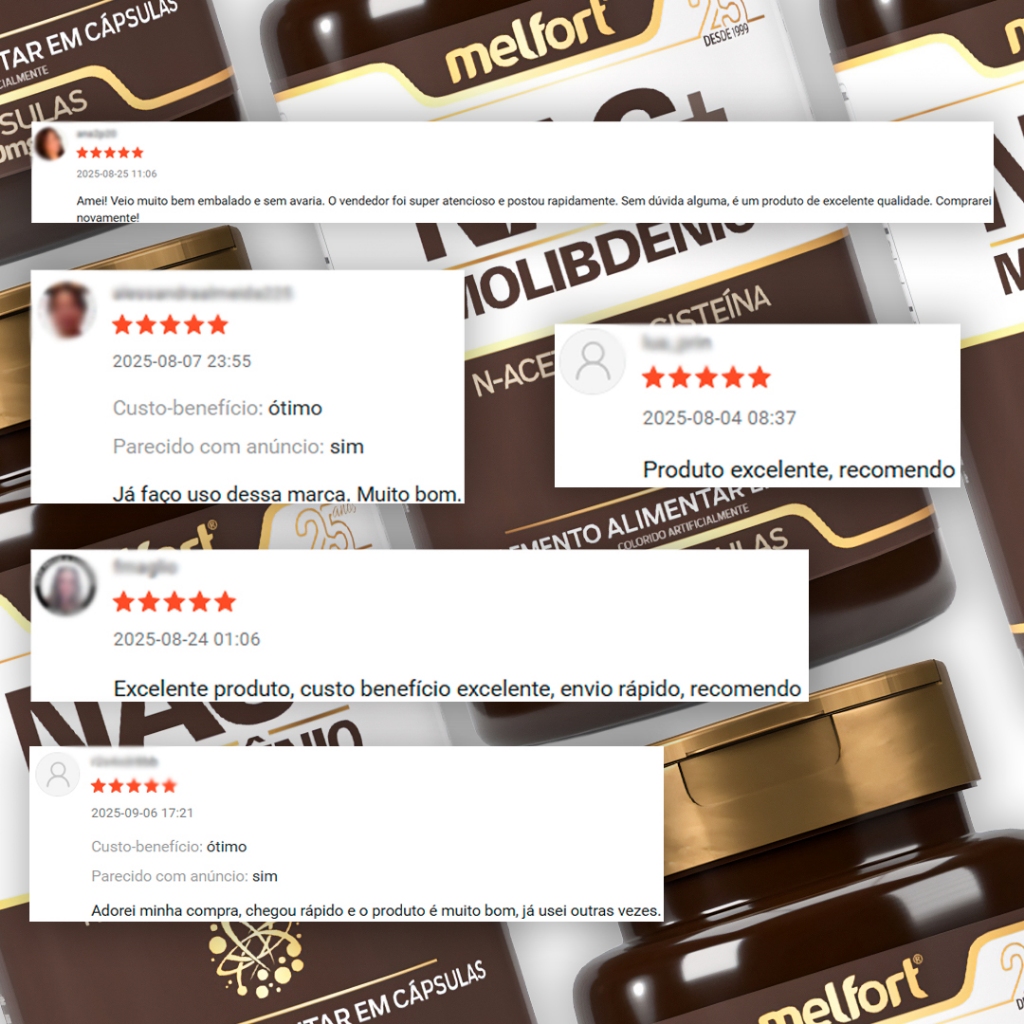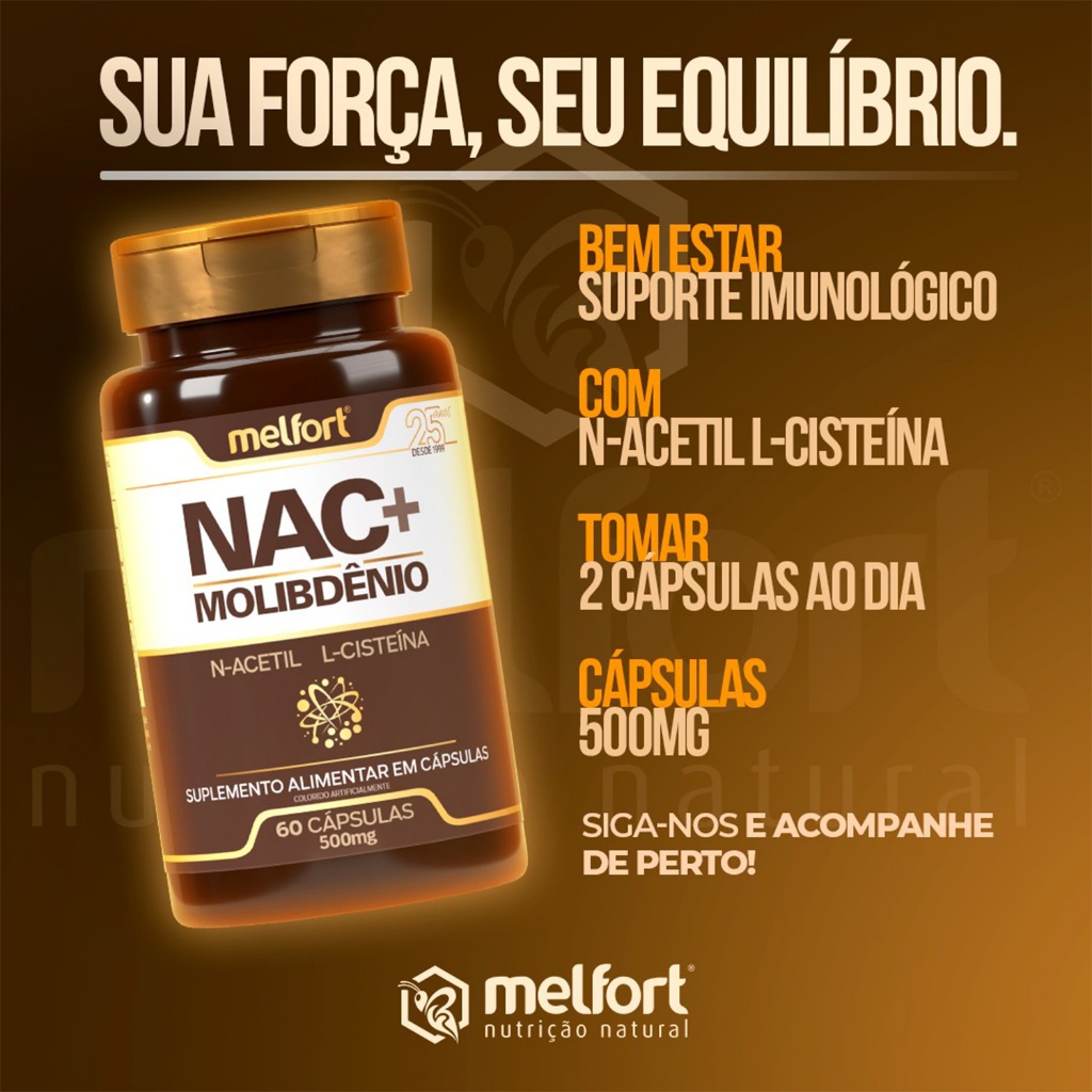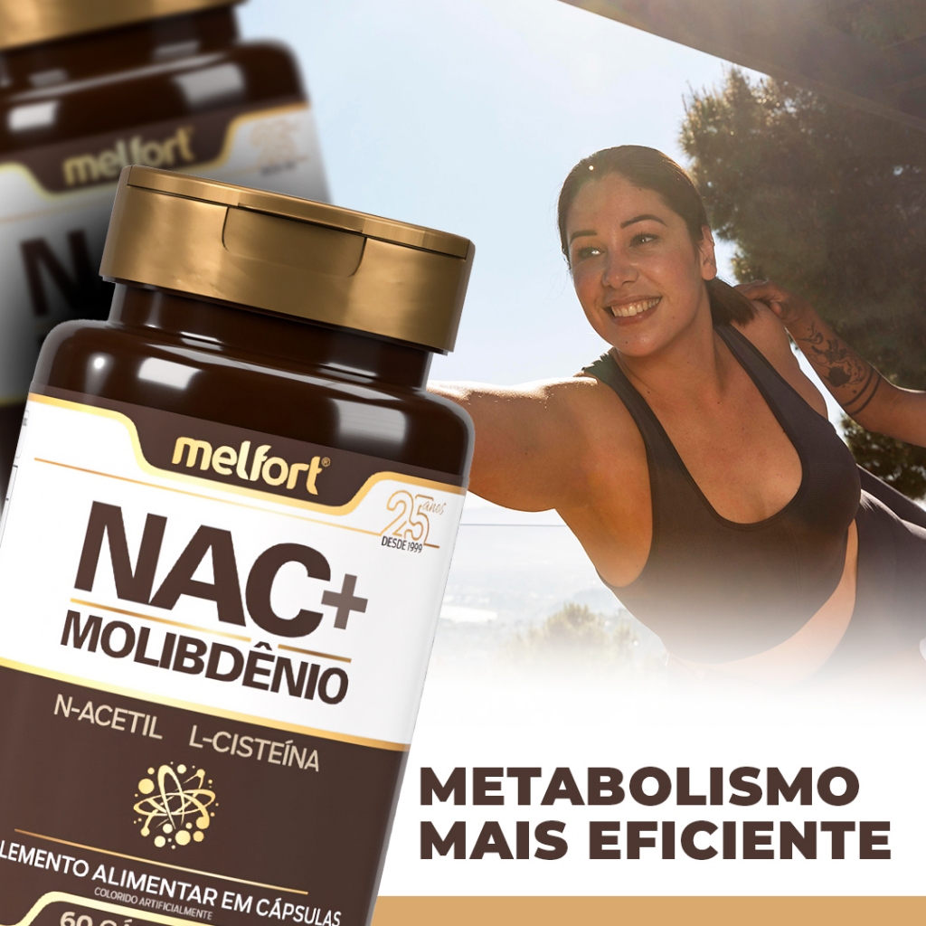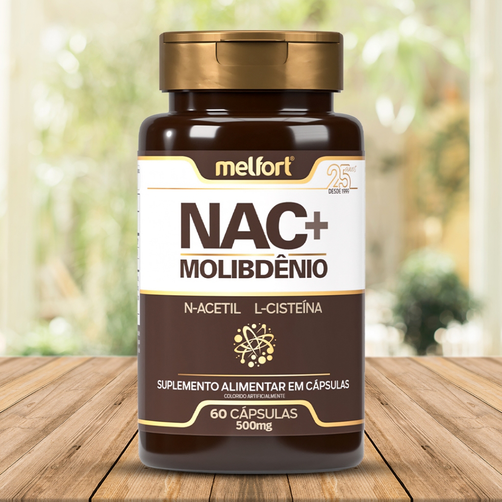 2x NAC + Molibdênio 60caps 500mg Suplemento Alimentar N-Acetil L-Cisteína Apoio Nutricional Diário