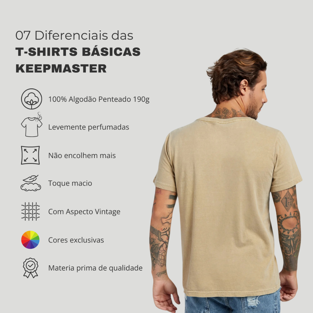 Kit 3 Camisetas Estonadas Lisas Masculina Keepmaster 100% Algodão Creator+