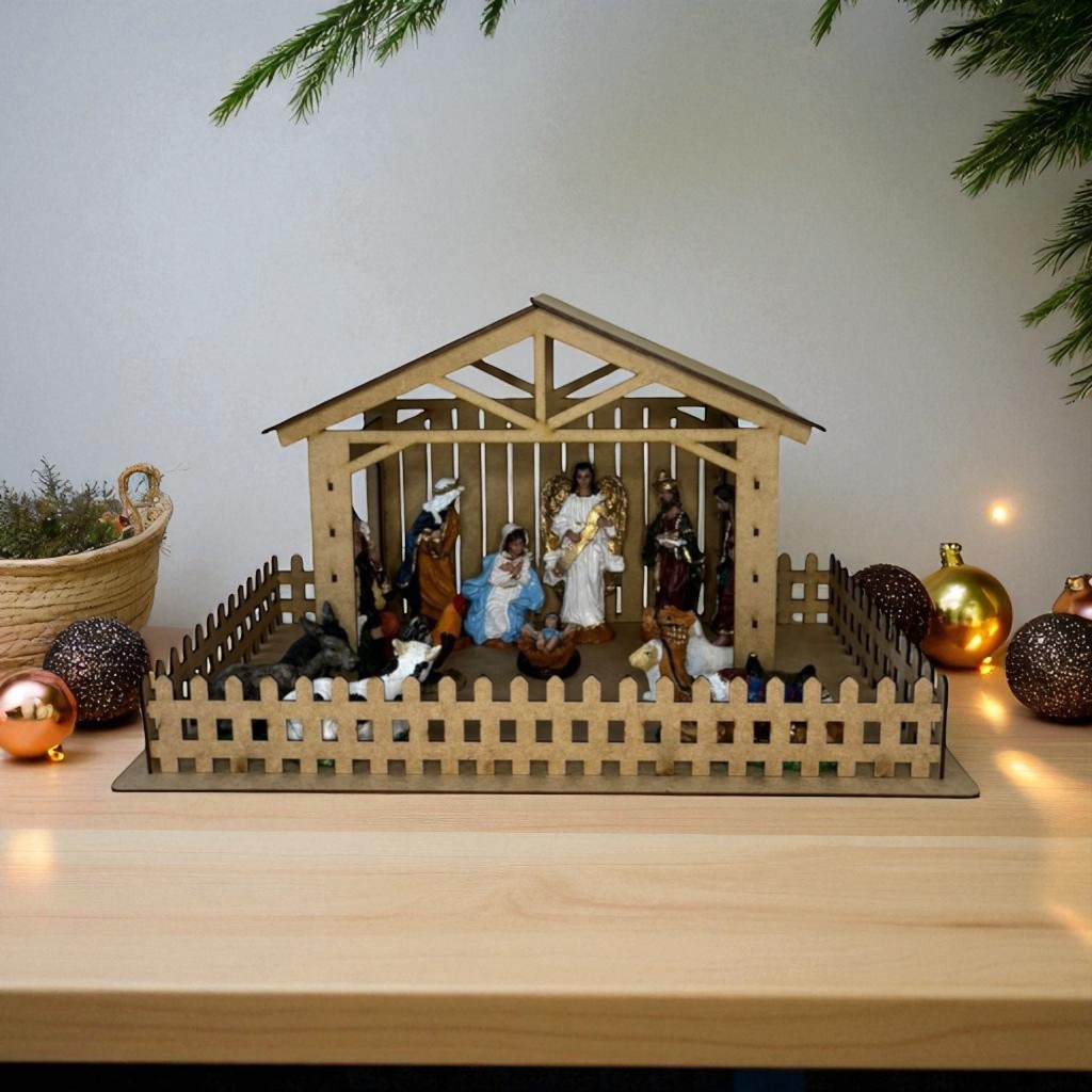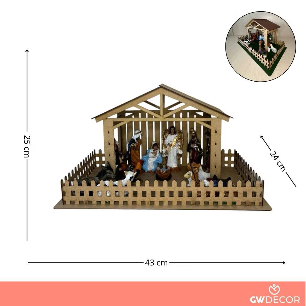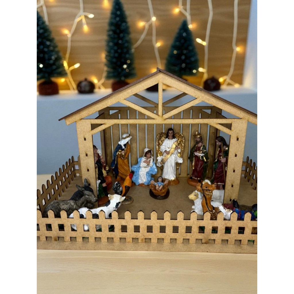 Kit Natalino Completo Presépio com Estábulo em MDF