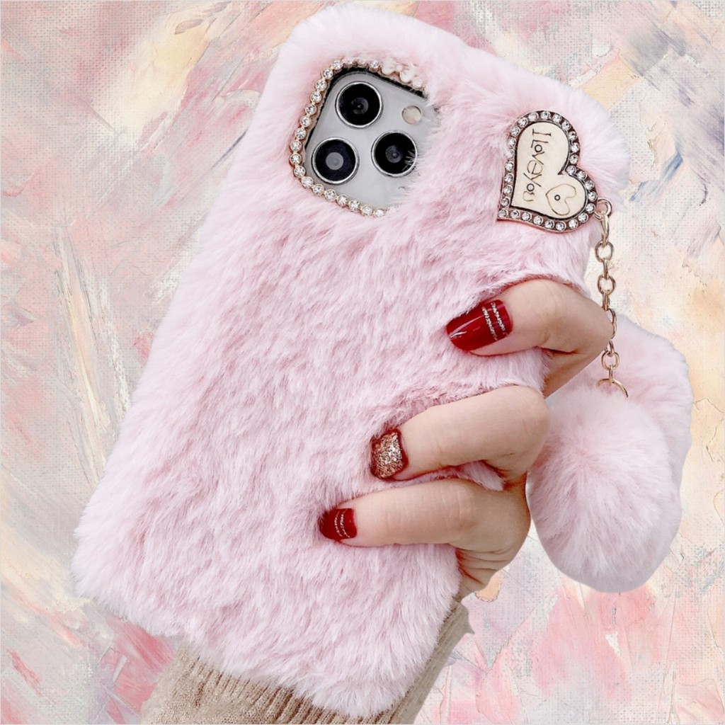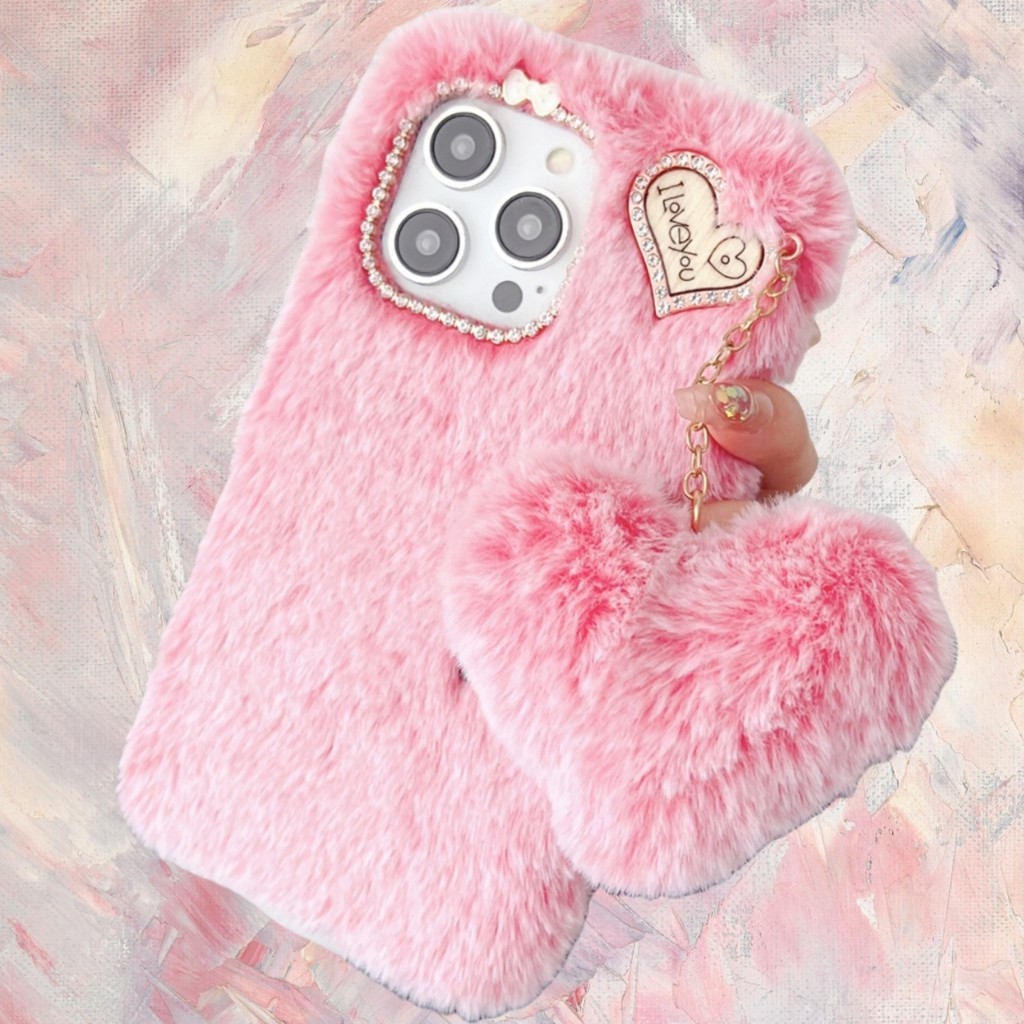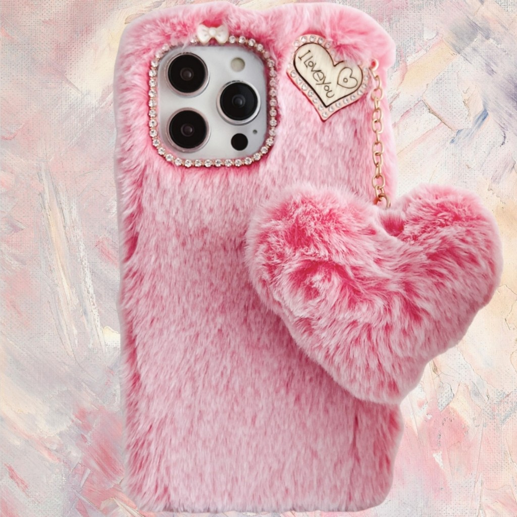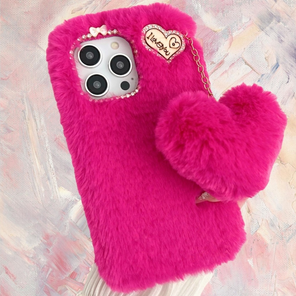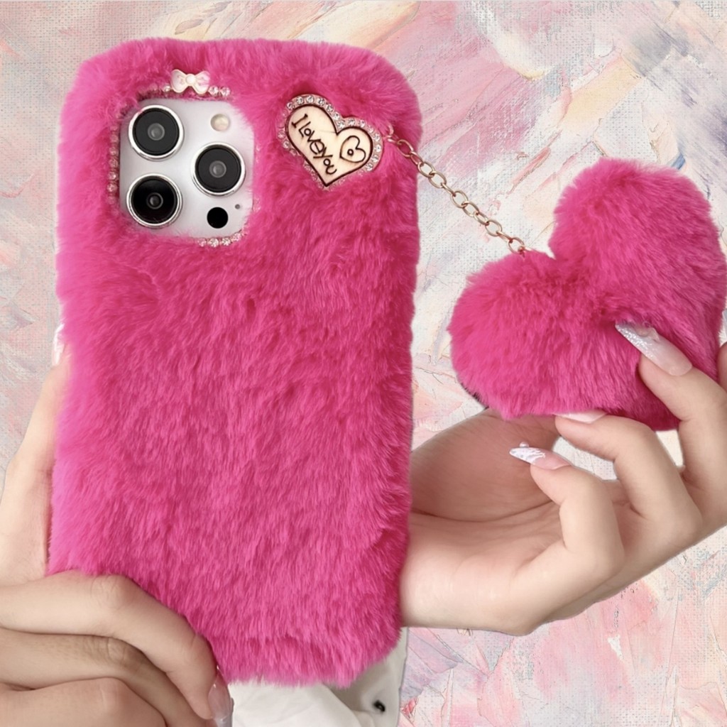 Para Moto G85 G84 G82 G73 G64 G55 G54 G53 G45 G35 G34 G24 G14 G04 Power Rosa Vermelho Peludo Capa De Telefone + Pelúcia