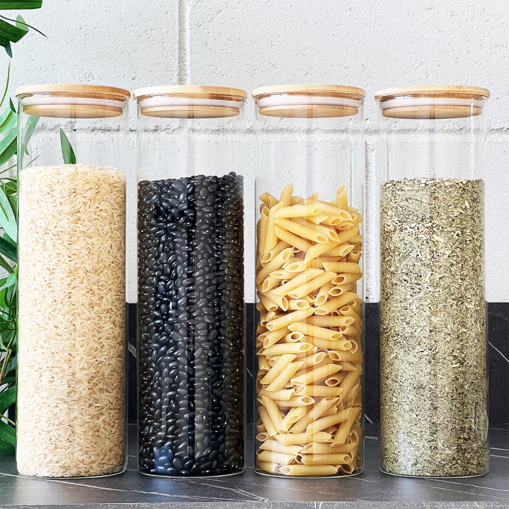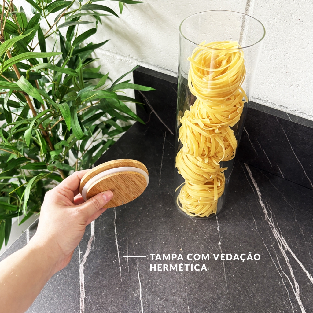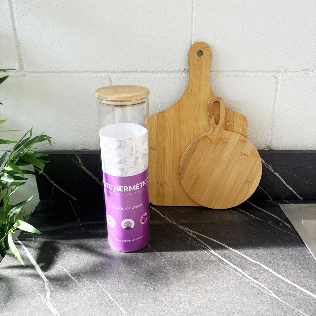 Kit 4 Potes Herméticos de Vidro com Tampa de Bambu 2000ml