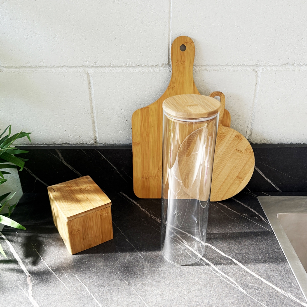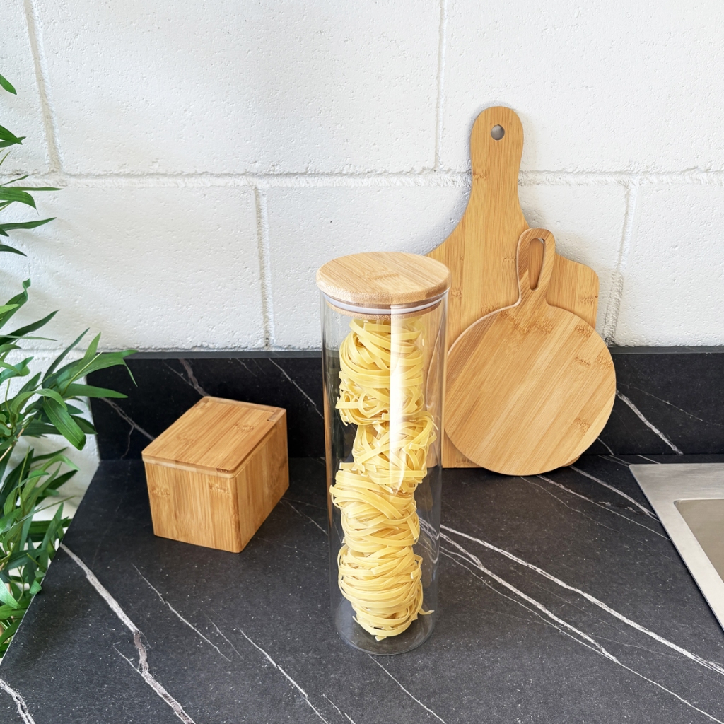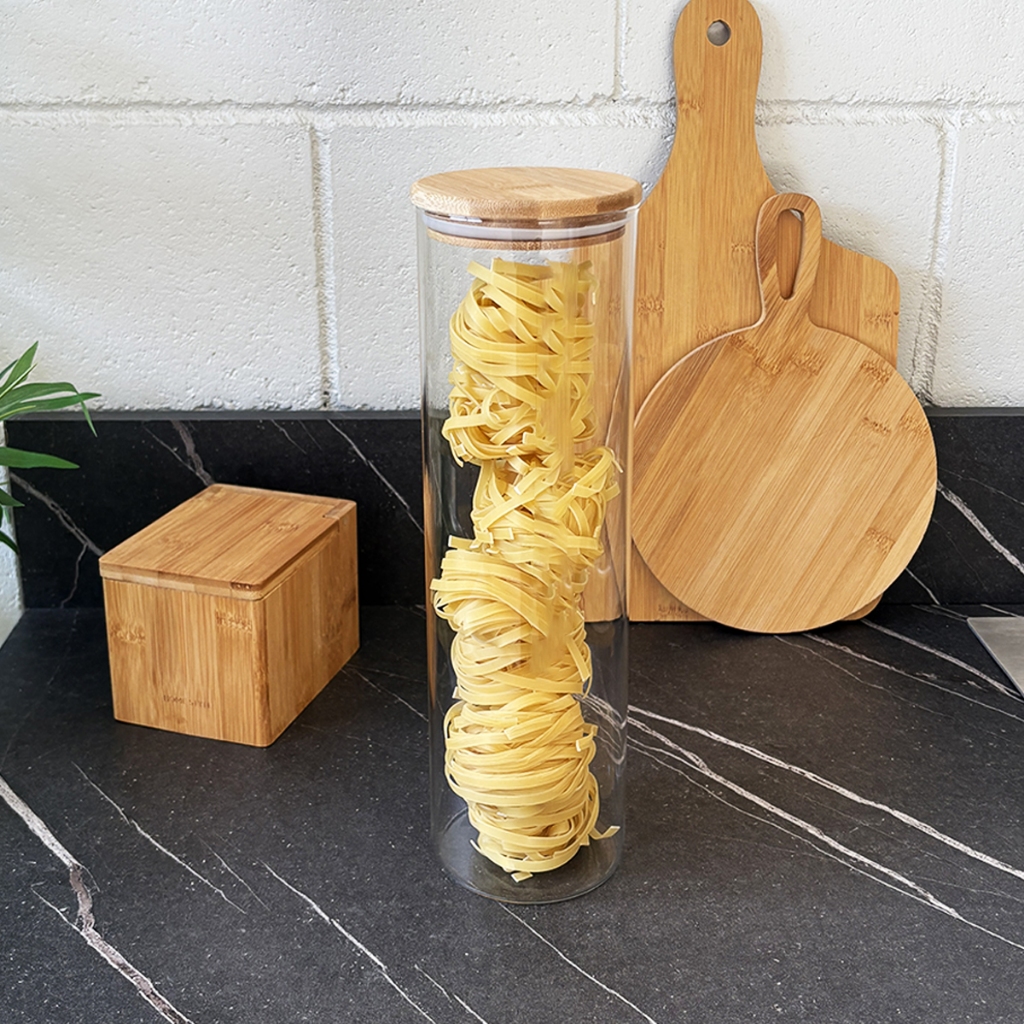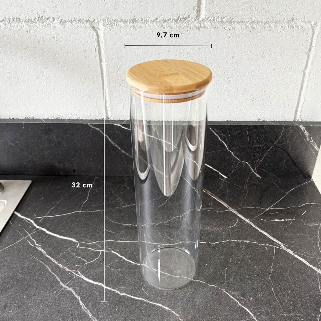 Kit 4 Potes Herméticos de Vidro com Tampa de Bambu 2000ml