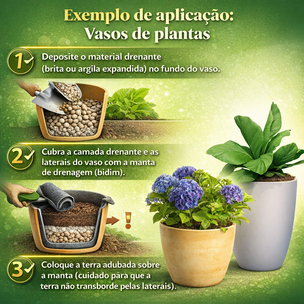 Manta Geotextil Bidim para Drenagem 100m²/50m² Para Vasos Jardineiras Jardins Drenagem
