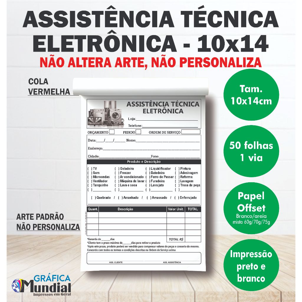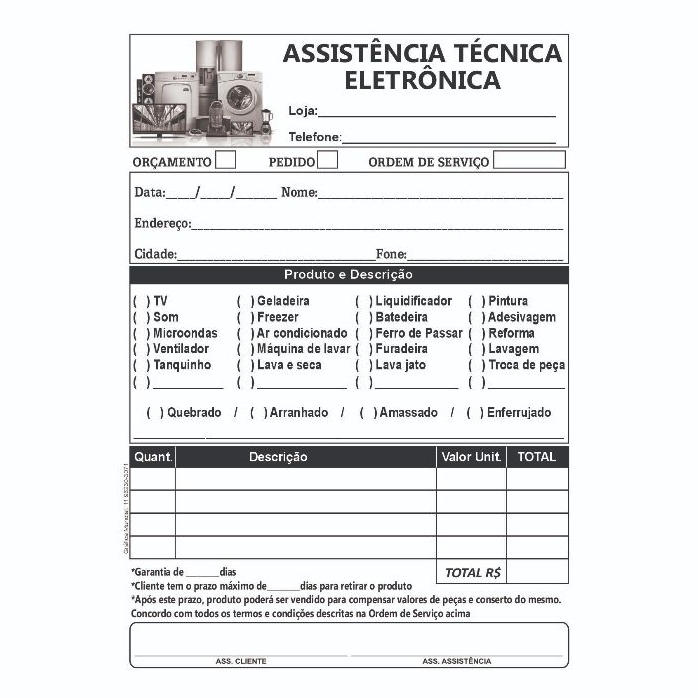 05 Blocos Assistência Eletrônica 10x14 c/ 50 folhas por talão Orçamento Ordem Serviço Técnica Conserto