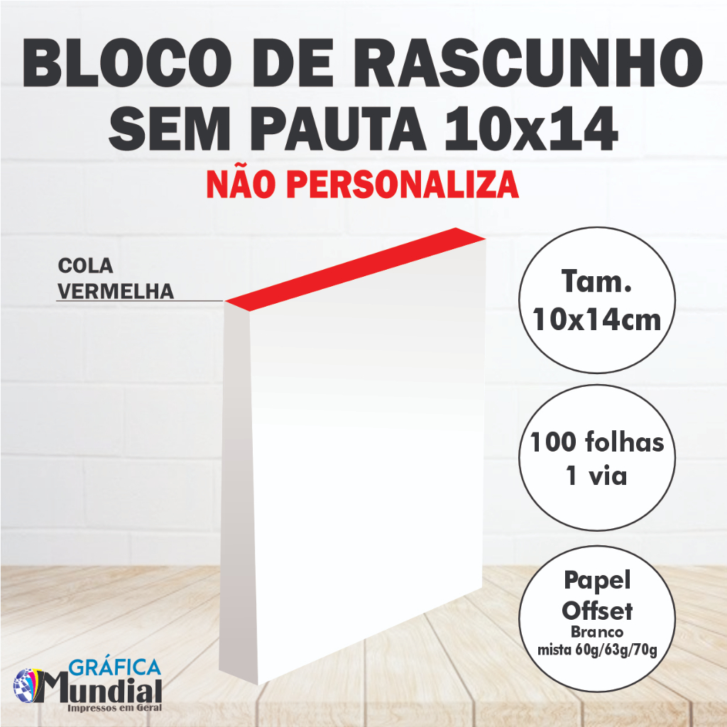 Rascunho 10X14 branco, bloco c/ 100 folhas Papelaria Anotação Comanda Bar Restaurante Loja sem pauta