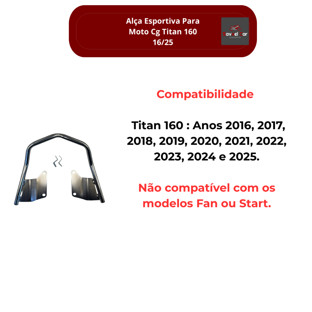Alça baixa Cromada Traseira Esportiva Bicuda Titan 160 2016 Á 2024