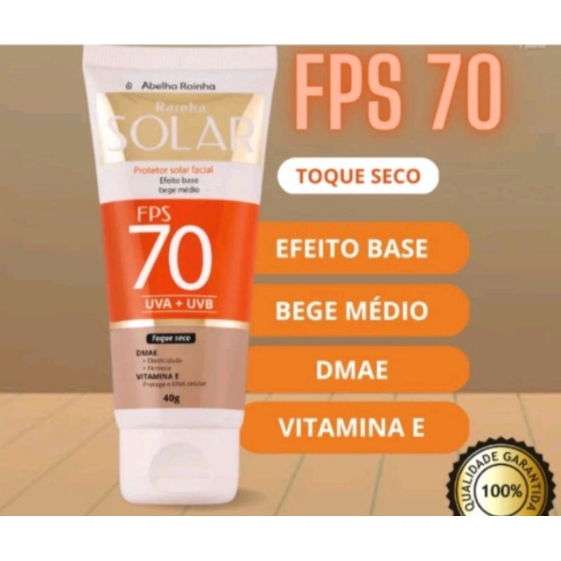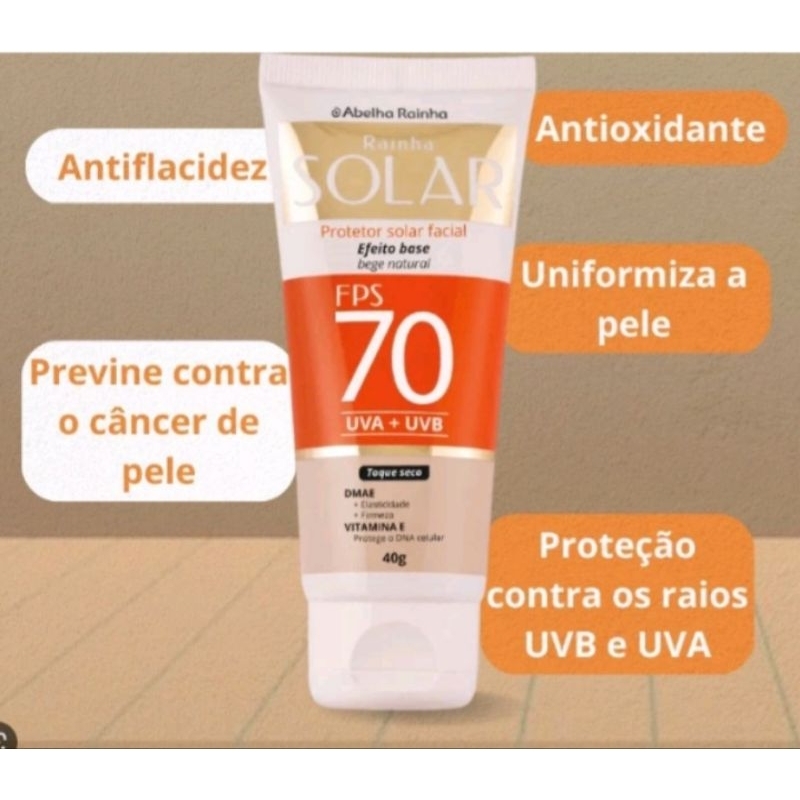 Protetor Solar Facial FPS 70 Base Bege Médio 40g Com DMAE