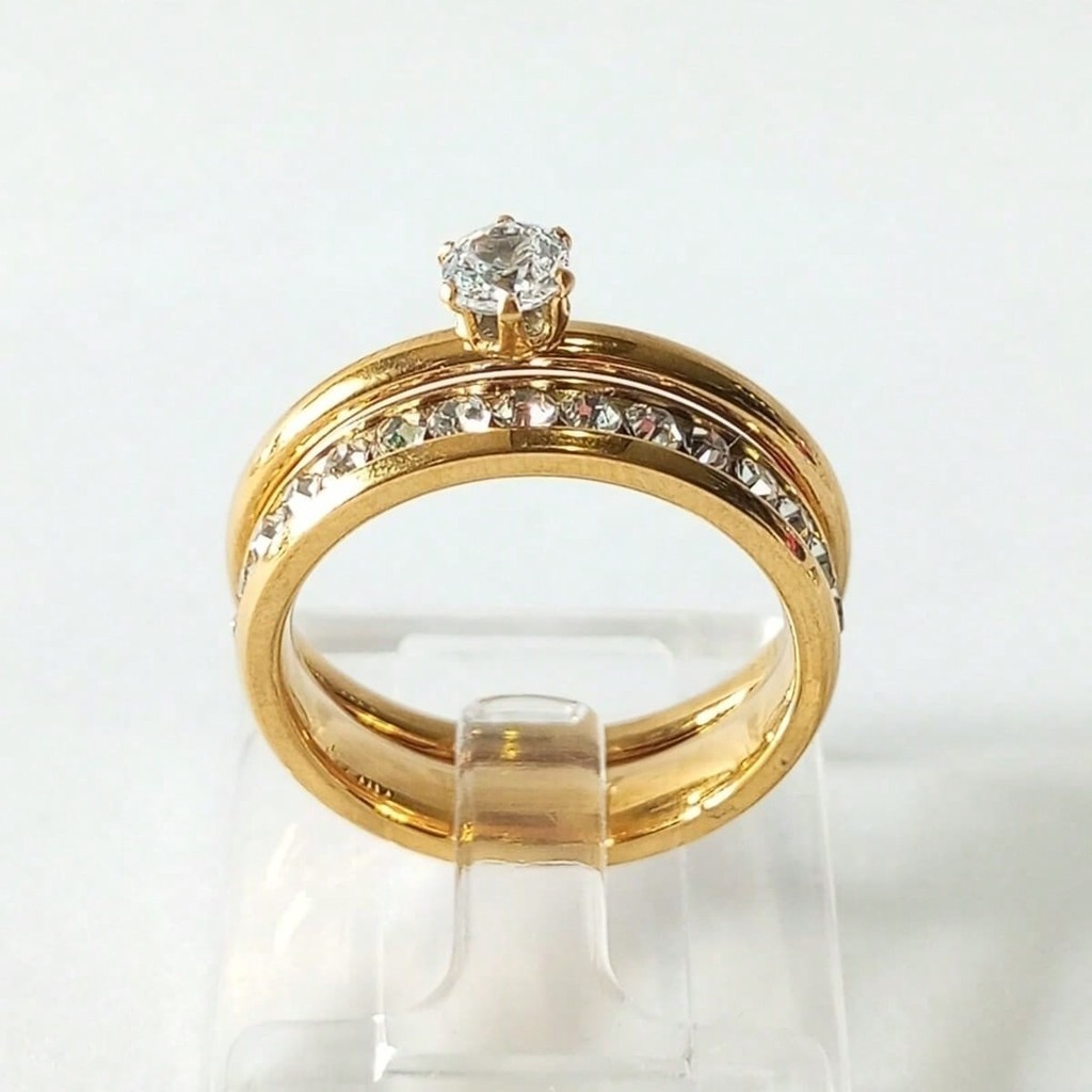 Anel Pedra Solitária Anel Aparador Cravejado De Zircônias Com Caixinha
